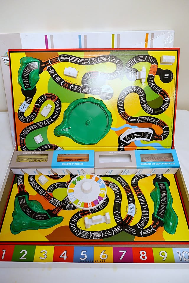 There is a very linear board that you move along by spinning a wheel or landing on spaces that tell you to move to a specific space or forward or back. There are a handful of intersections where you can choose to go one direction or another but they ultimately have similar spaces and meet back up quickly. There are a handful of choices regarding insurance and investments but for the most part it is a game of luck.