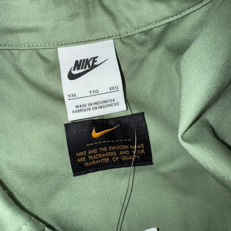 Brand new with tags. Men’s size XXL. Military green. Sold out everywhere and hard to find. Originally purchased new for $170 CAD after tax. Made for all the things you do outside of sport, the Nike Life collection features iconic workwear and military-inspired designs—built to last and made for style, comfort and versatility. This lightweight woven button-down shirt features flap-over utilitarian pockets on the chest for easy storage. The roomy fit gives you space to layer and keeps it casual, whether you're working hard or taking it easy. 100% Cotton: A very soft and pleasant material whose properties include tensile strength and elongation at break. Material: Canvas Colour: Green Season: Summer Fit: Loose Neckline: Collar Sleeve: Short sleeve Pockets: Front pockets Fastening: Buttons Lower hem: Loose Details: Embroidery with a logo Brand: Nike