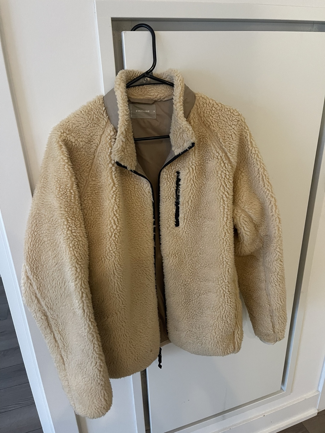 Cozy up in this Everlane fleece jacket! It's a size medium and has a full zip front. The fleece is soft and warm, perfect for those chilly Canadian days. It's in great condition and ready for a new home!