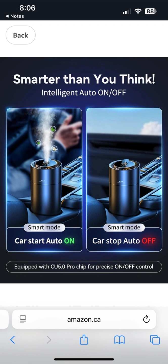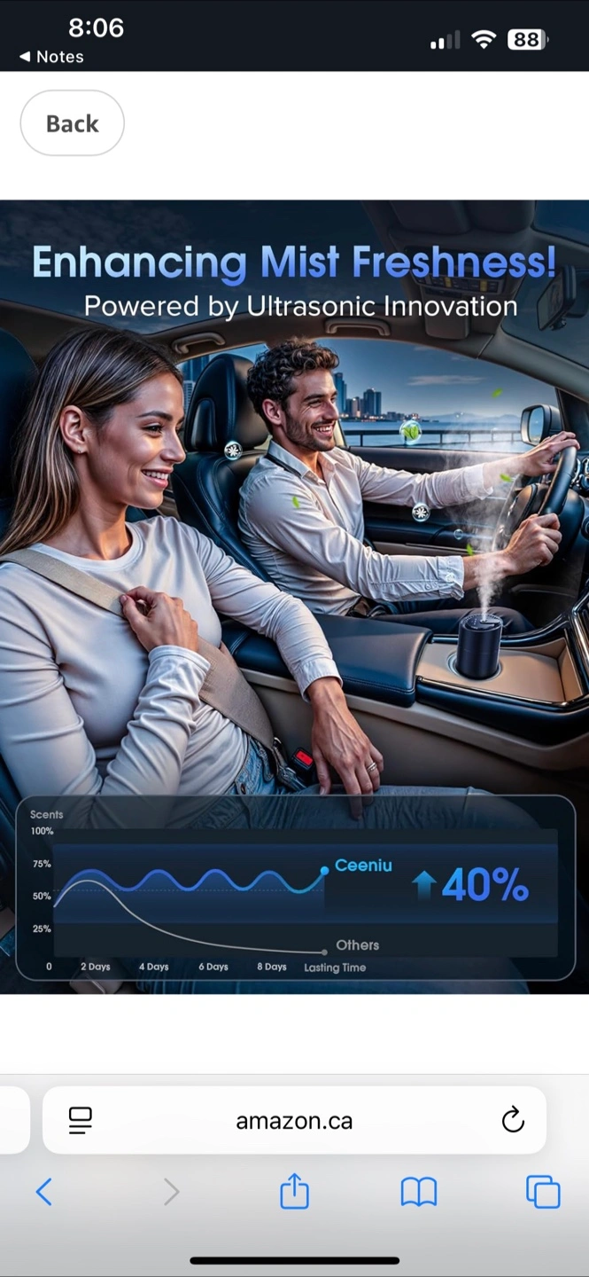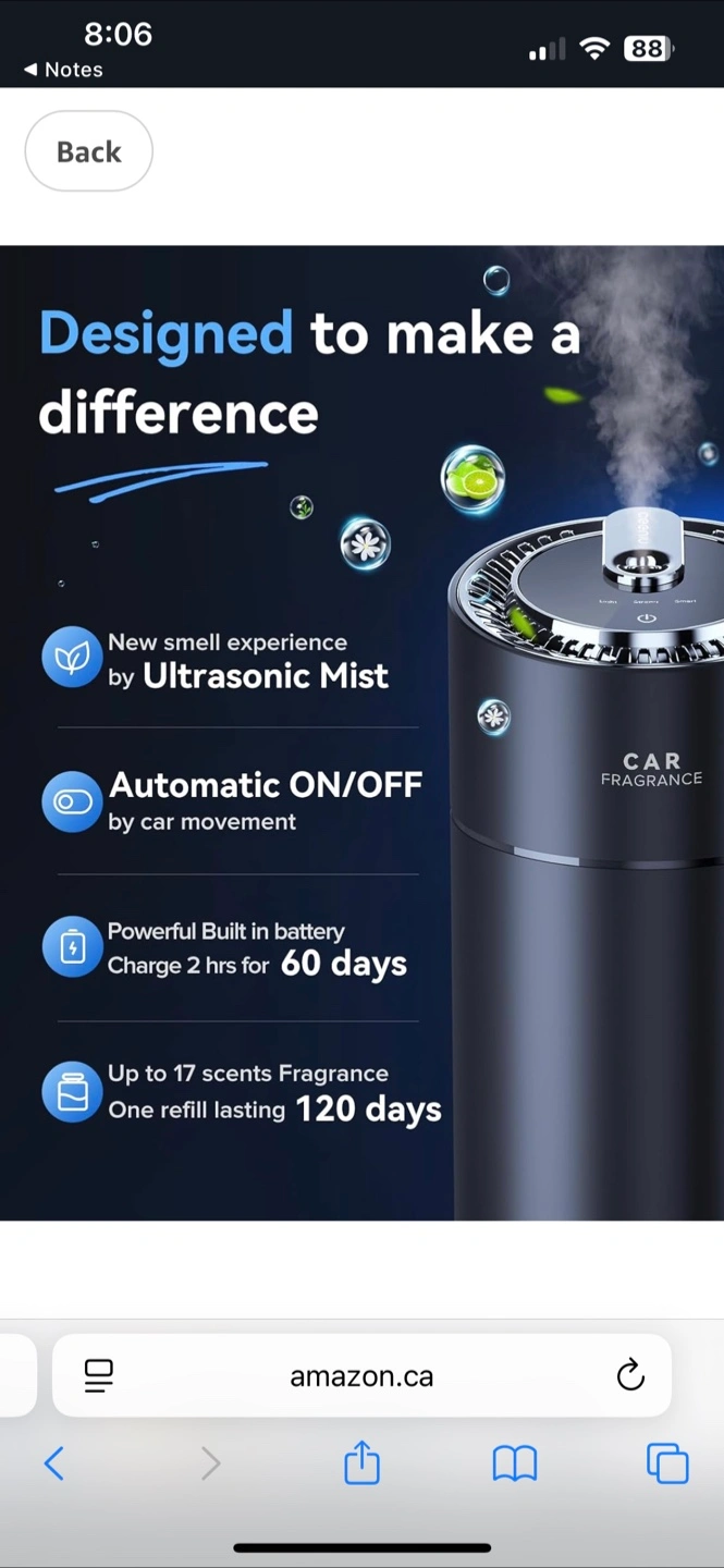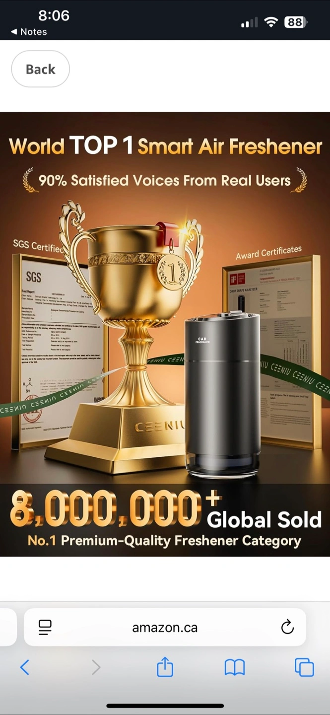 Enhance your driving experience with this Ceeniu smart car air freshener! This new ultrasonic diffuser automatically turns on and off with car movement, providing a consistent and pleasant aroma. With a powerful built-in battery, enjoy up to 60 days of freshness on a single charge, and each refill lasts for 120 days. It's compatible with up to 17 different scents for a customizable atmosphere. Key Features: * Ultrasonic Mist Technology * Automatic ON/OFF with Car Movement * Long-lasting Battery (60 days per charge) * 120 days per refill * Compatible with up to 17 scents I think this air freshener would be a 'scent'-sational addition to your vehicle! But don't just take my word for it, check it out yourself! If the ad is up, it's available! The product is in fully functional and brand new condition.