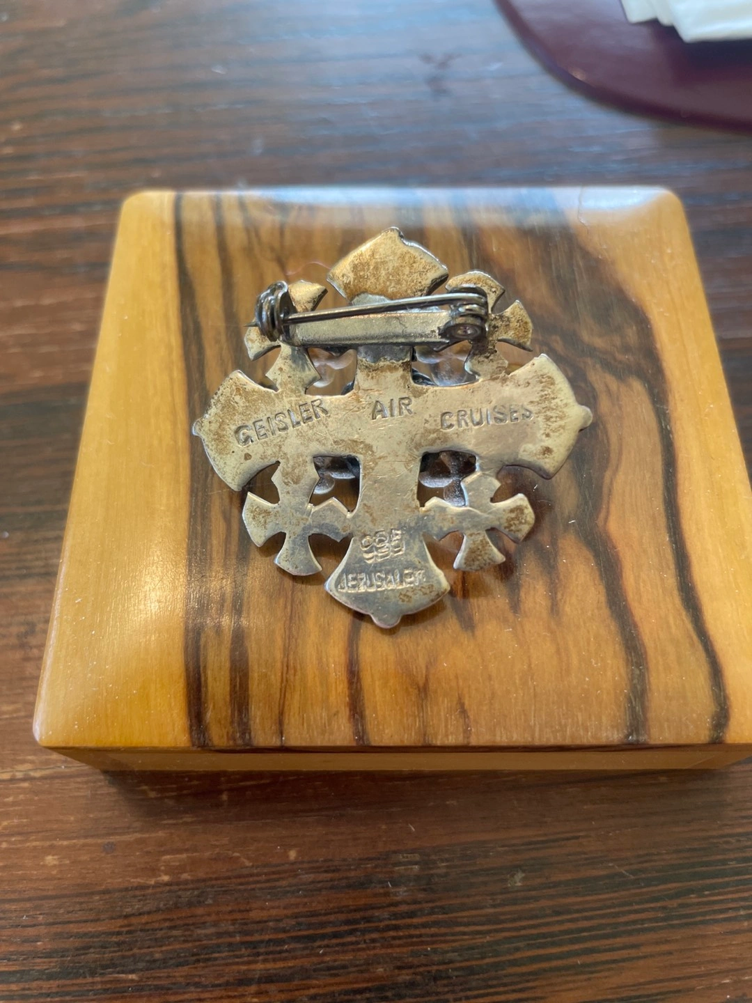 Silver 1960s cross brooch - Jerusalem .955 silver