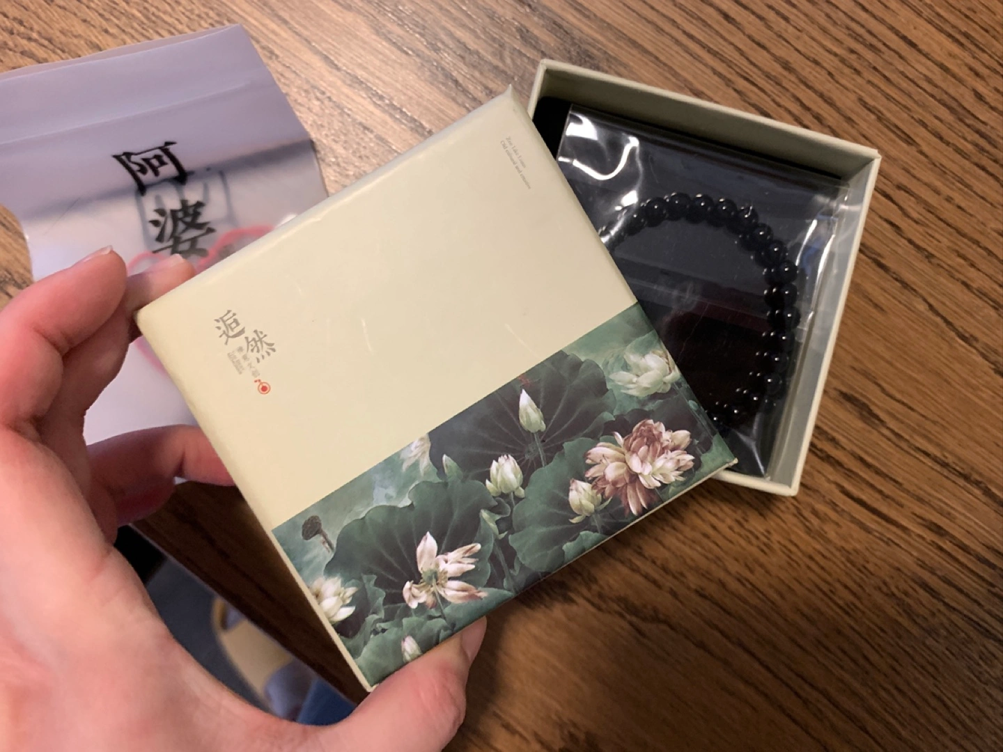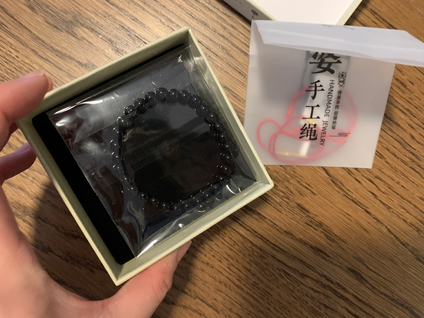 Selling a beautiful black beaded bracelet. It comes in its original box and packaging, perfect for gifting or treating yourself! The bracelet is handmade and has a lovely, unique design.
