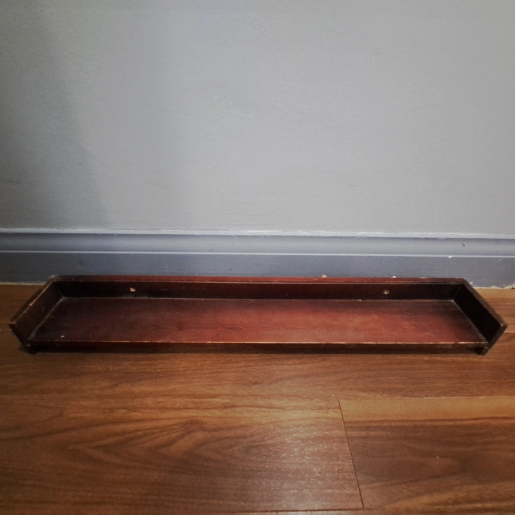 Condition is okay. It's an old shelf but it's very sturdy. Has some scratches but works well in a kitchen or bathroom setting.