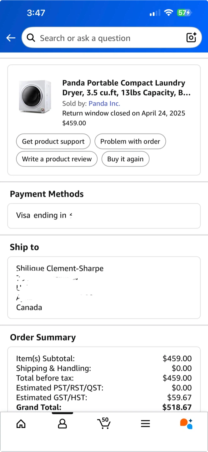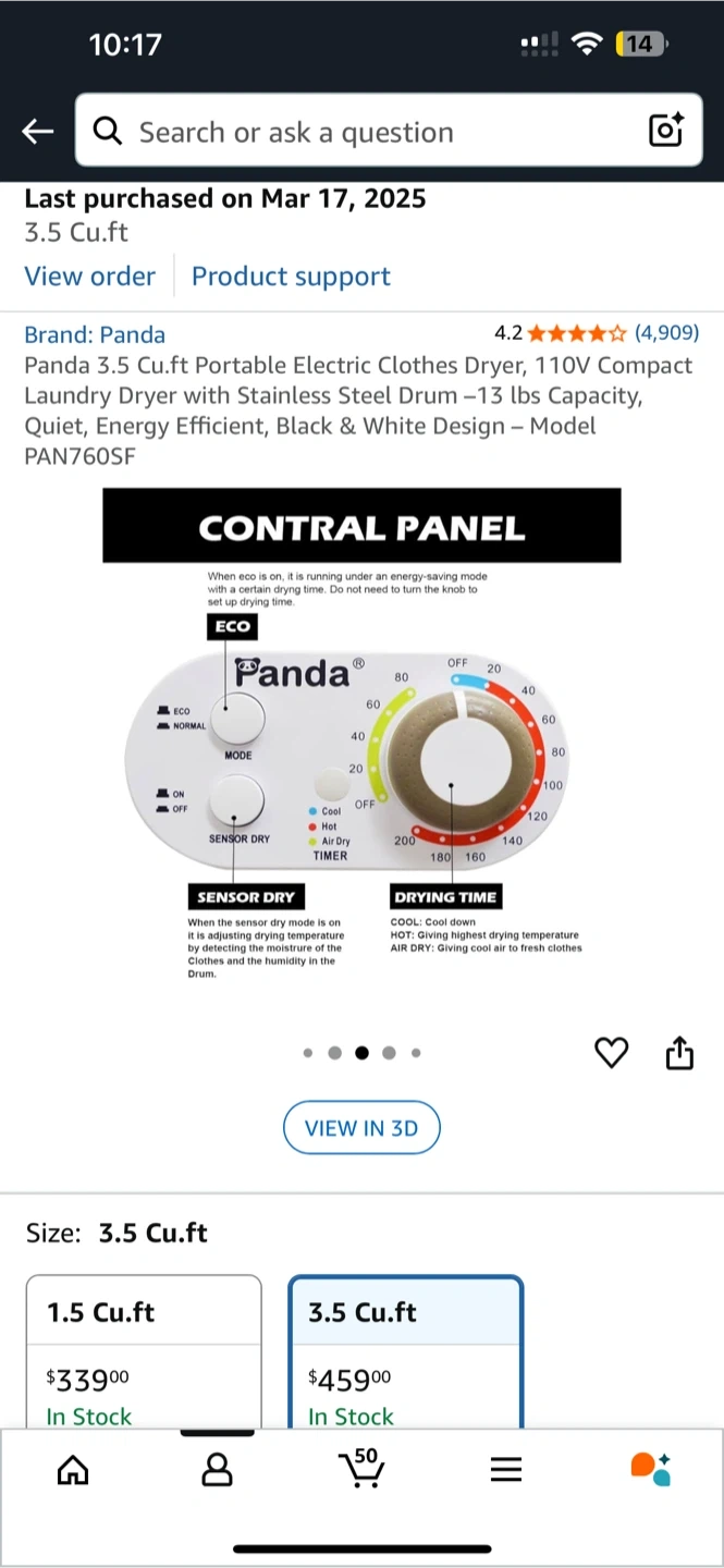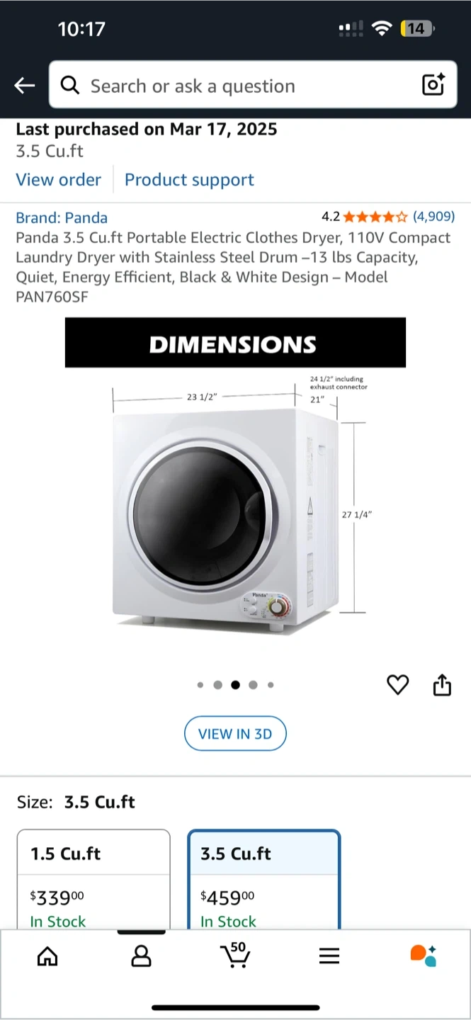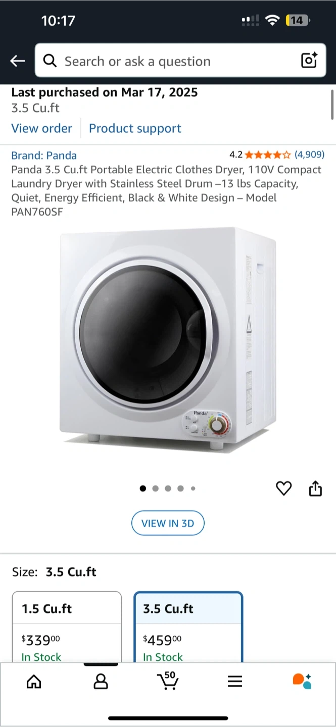 Looking to sell my Panda 3.5 Cu.ft Portable Electric Clothes Dryer! This compact dryer is perfect for apartments or small spaces. It features a stainless steel drum and can handle up to 13 lbs of laundry. It's energy efficient and has a quiet operation. The original price was $459.00 +tax, purchased on Amazon March 2025, selling as I’m moving to an apartment with in unit laundry.