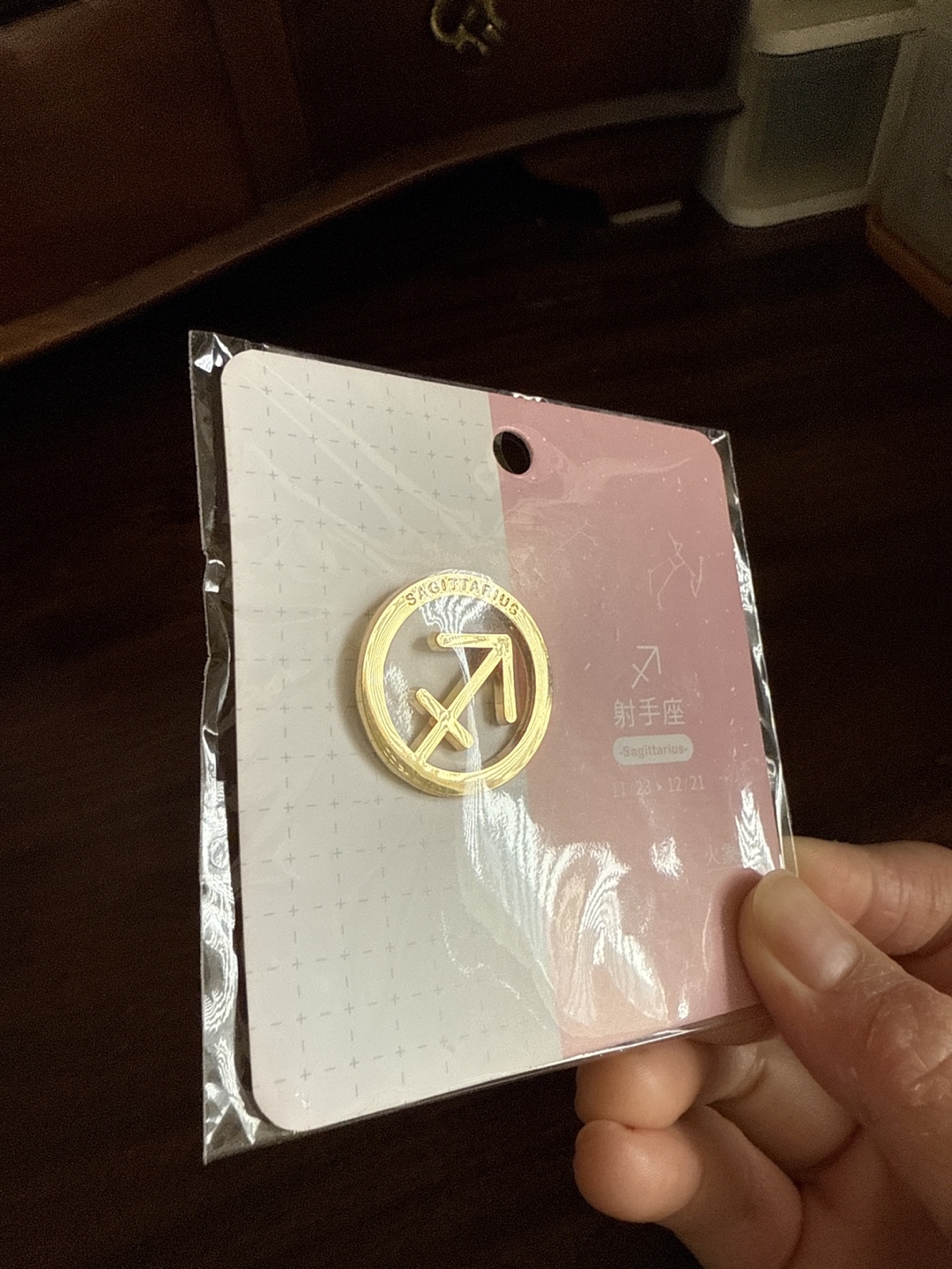I have a brand new Sagittarius zodiac pin still in its original packaging! It features the Sagittarius symbol in a gold-tone finish. Perfect for adding a personal touch to your jacket, bag, or pin collection