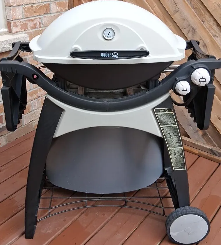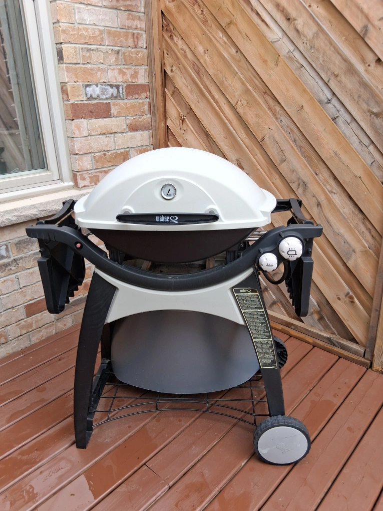 Selling a Weber Q series portable gas grill. It's in good used condition and ready for your next BBQ! Perfect for small spaces or taking on the go. This grill features a compact design, built-in thermometer, and easy-to-use controls for a great grilling experience