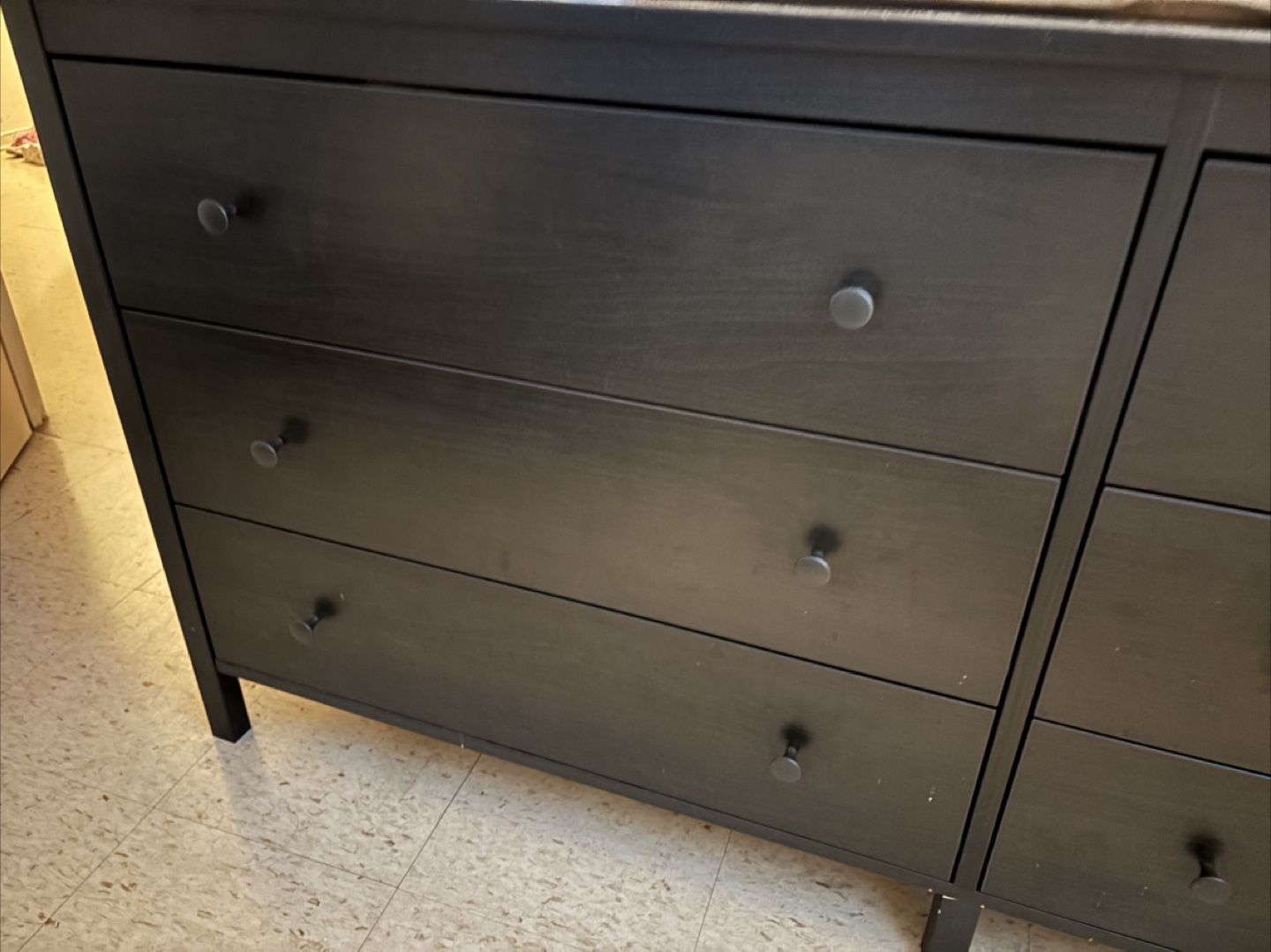 Selling a used IKEA Hemnes dresser in black. It's in good condition and ready for a new home! Perfect for adding storage to any bedroom or living space.