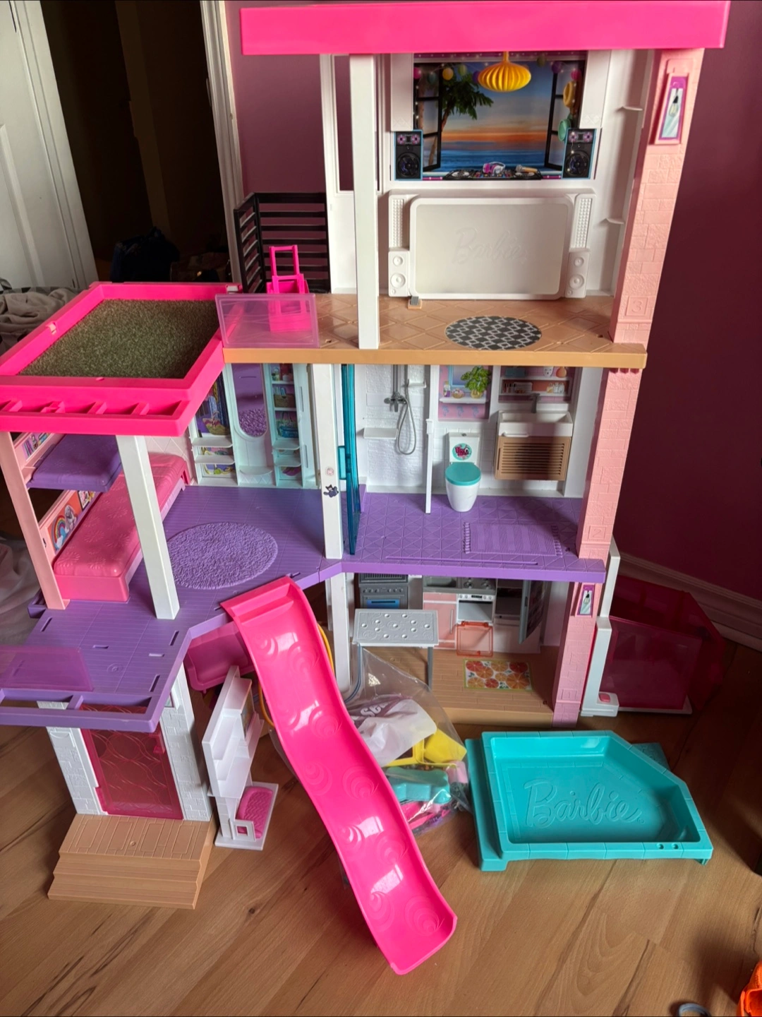 Selling a Barbie Dreamhouse dollhouse! It looks like it comes with lots of accessories to make playtime even more fun. Perfect for any Barbie enthusiast! Comes with almost all the accessories that came with the house. Everything is in great working order.