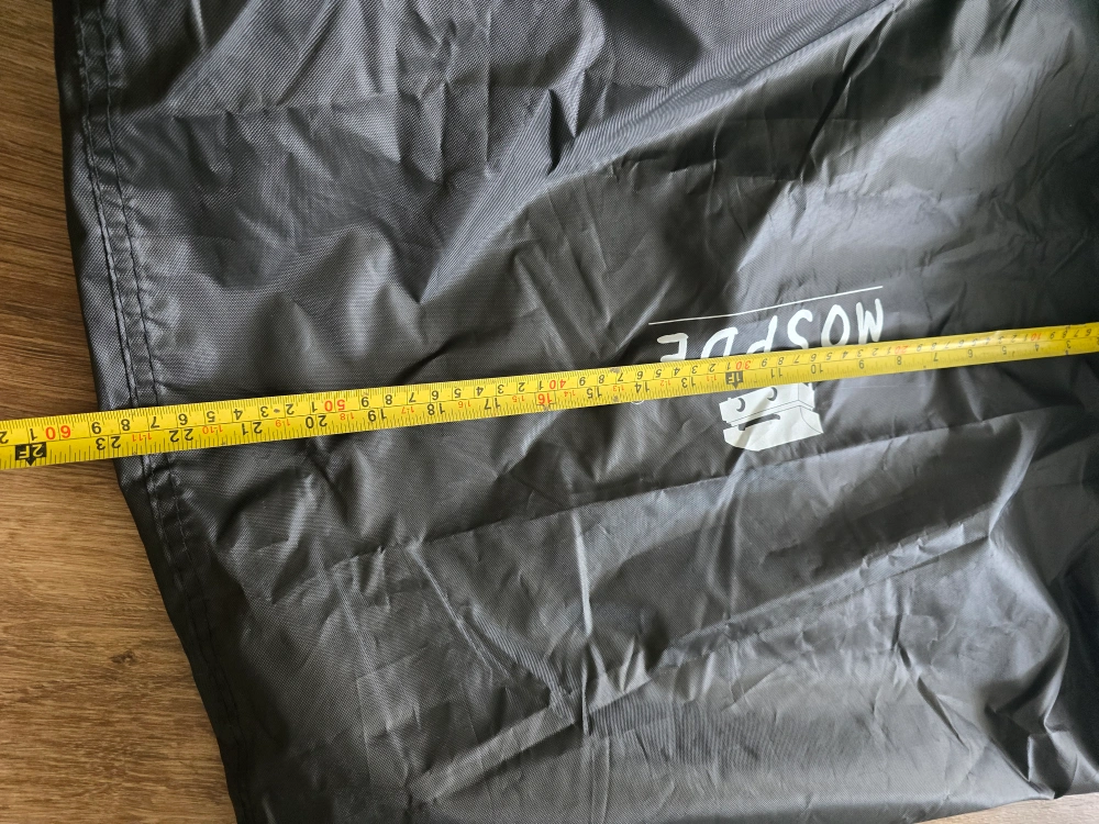 NOSHDE black bbq cover. The bag measures approximately 60 inches in length and 17 inches in width.