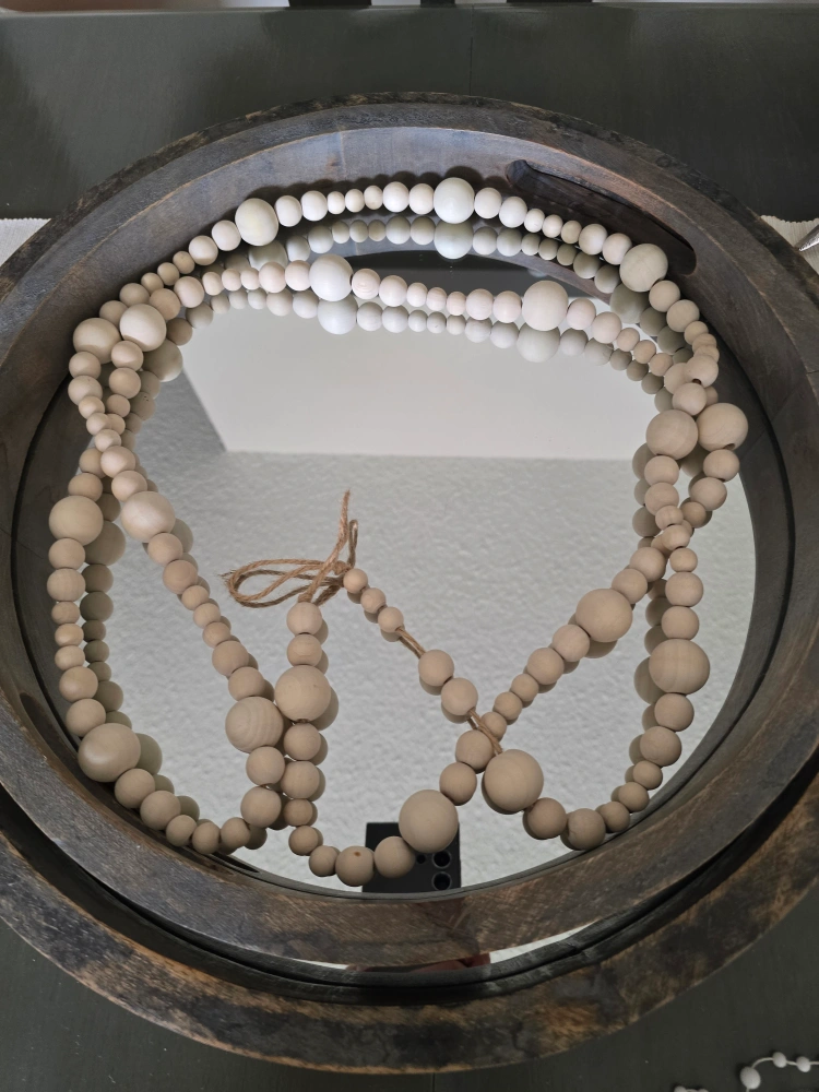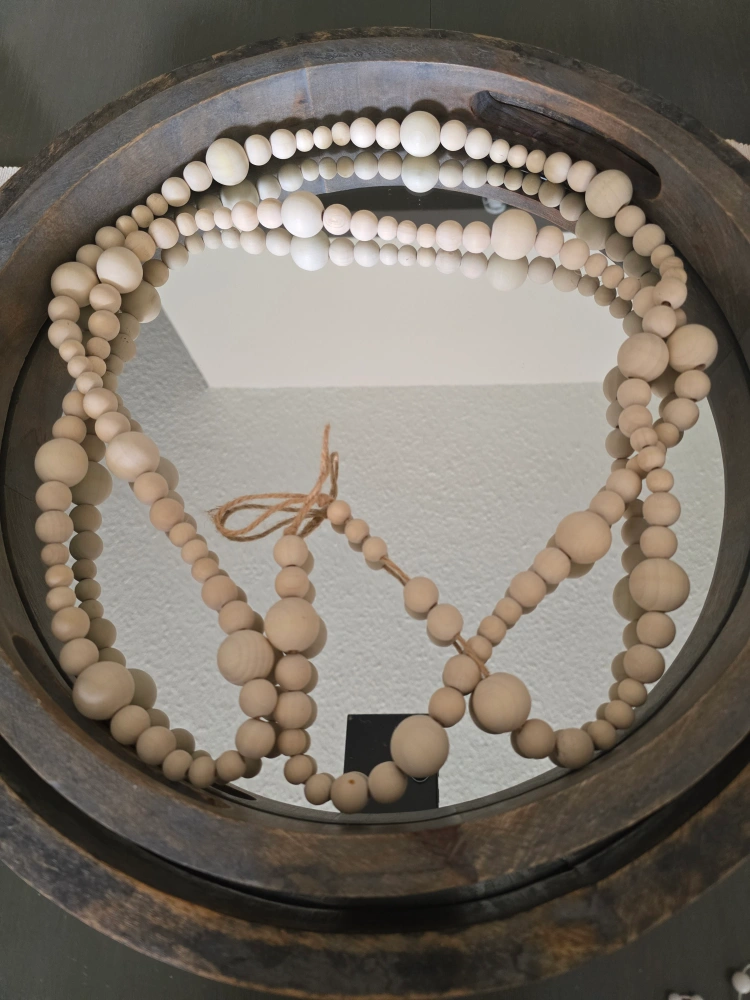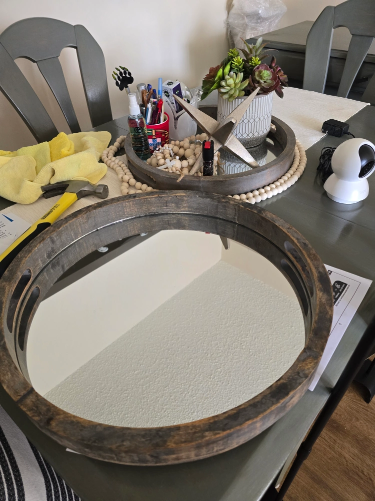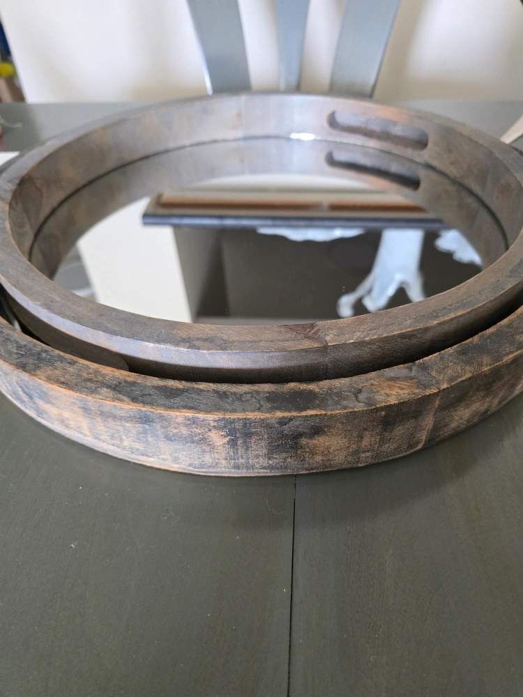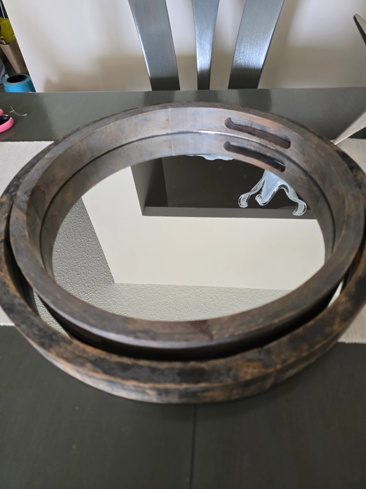 Selling a round wood and mirror tray. It measures about 40cm in diameter. Great for adding a rustic touch to your decor! pick up only Cash only see my other posts