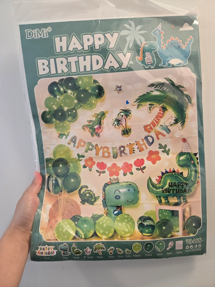 Get ready to roar with this adorable DiMi Happy Birthday dinosaur balloon set! Perfect for a dino-themed party, this set includes everything you need to create a festive atmosphere. It has a variety of balloons and decorations to make the birthday extra special