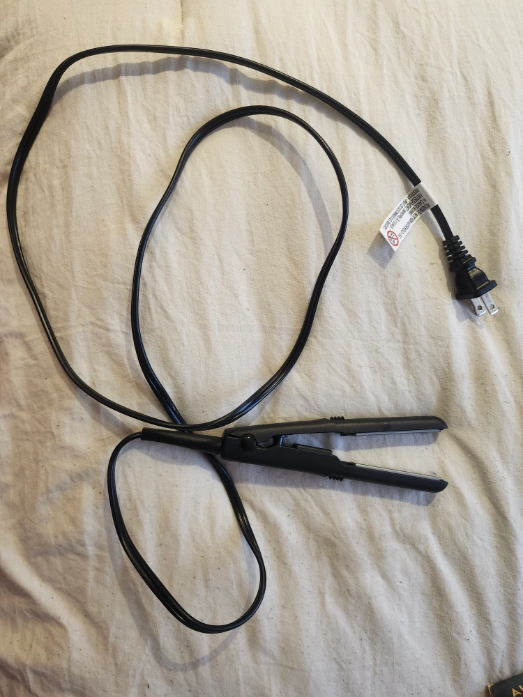 A brand new without box mini hair straightener! It's perfect for travel or quick touch-ups. used it a few times but doesnt really work for my hair. Great for short hair bangs touch ups.