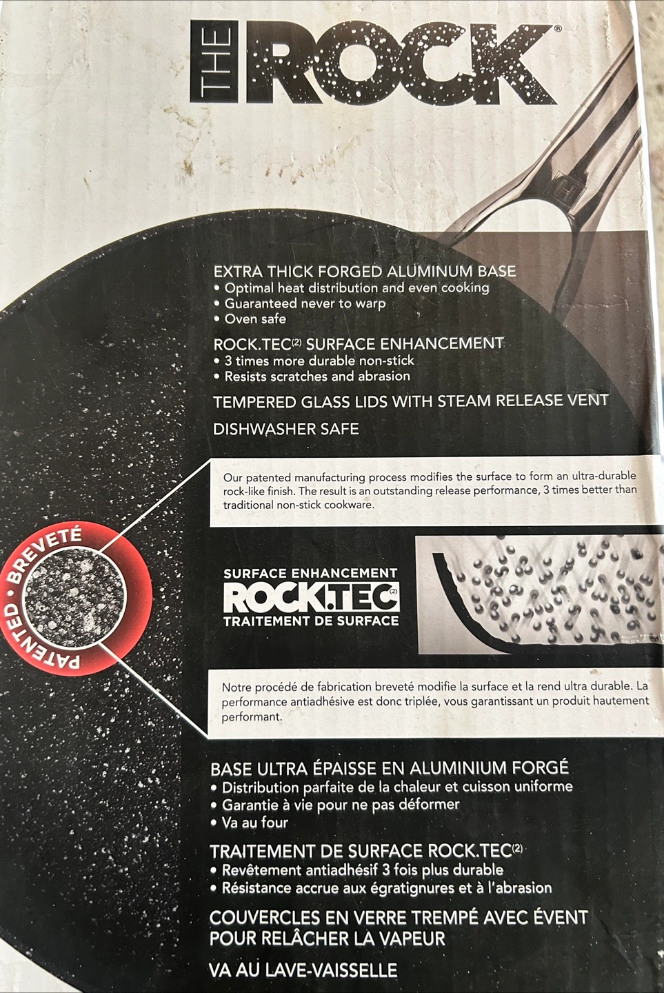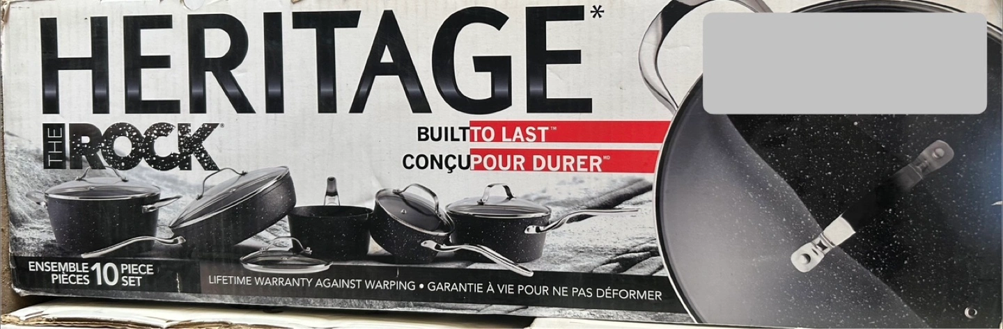 Selling a brand new The Rock Heritage 10-piece cookware set, still in its original box! This set is built to last and features a non-stick surface that's 3 times more durable.