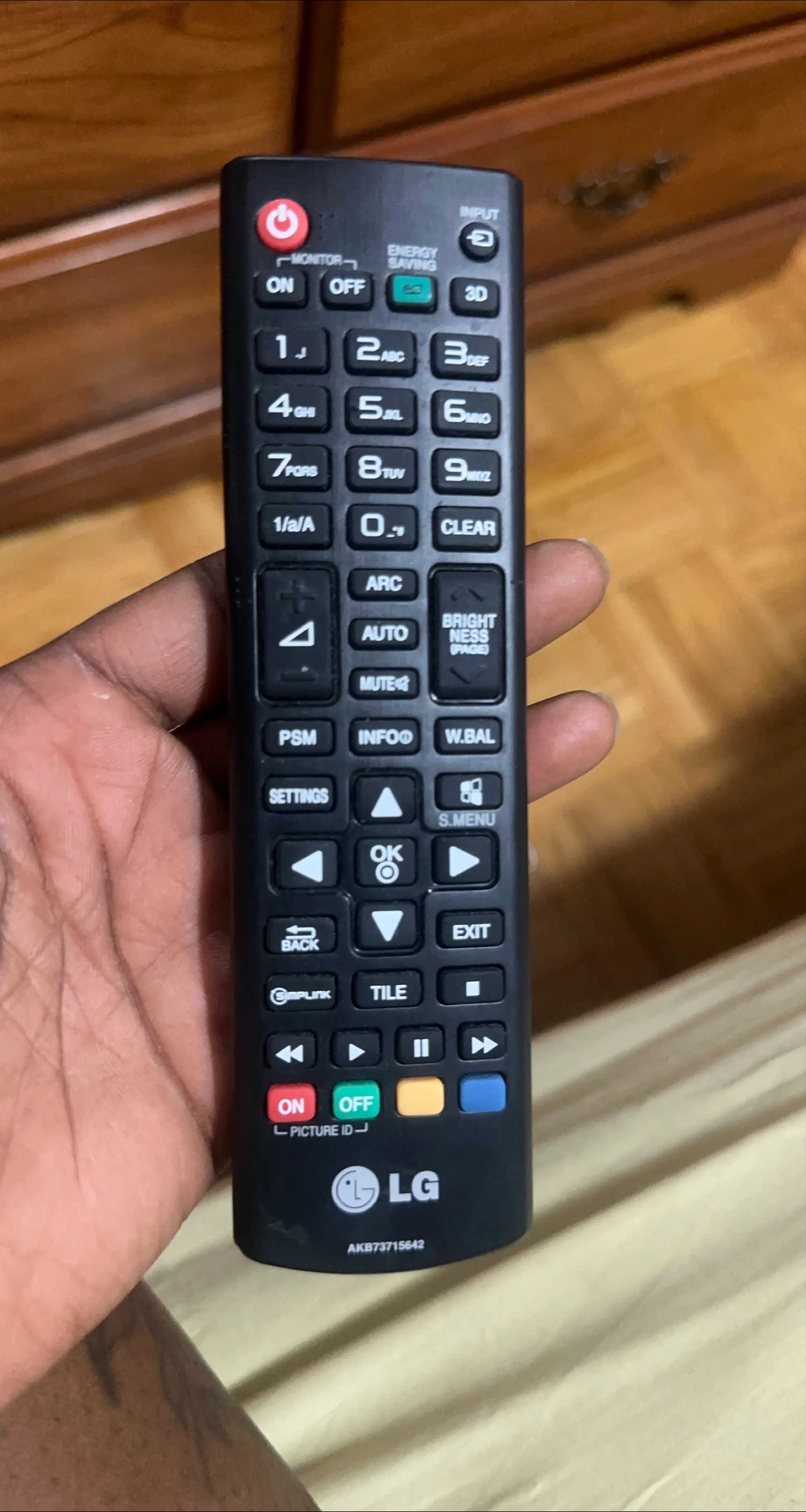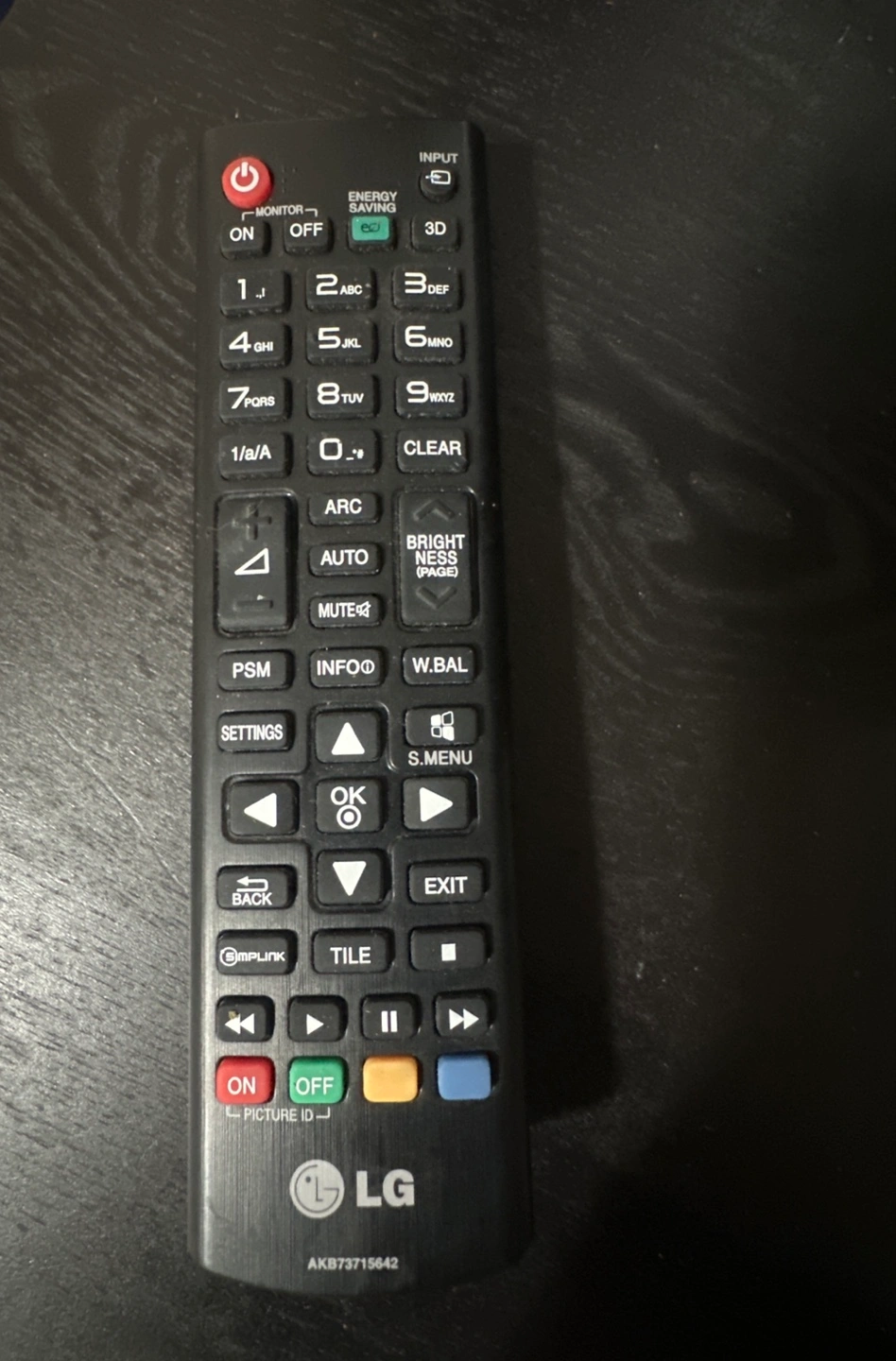 Selling an LG TV remote control, model number AKB73715642. It's in great shape and ready to use with your LG television! It's black and has all the standard buttons you'd expect. Batteries are not included!