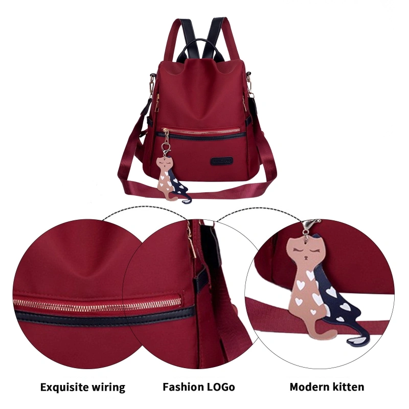 π HAOYUAN Maroon & Black Cat-Themed Backpack