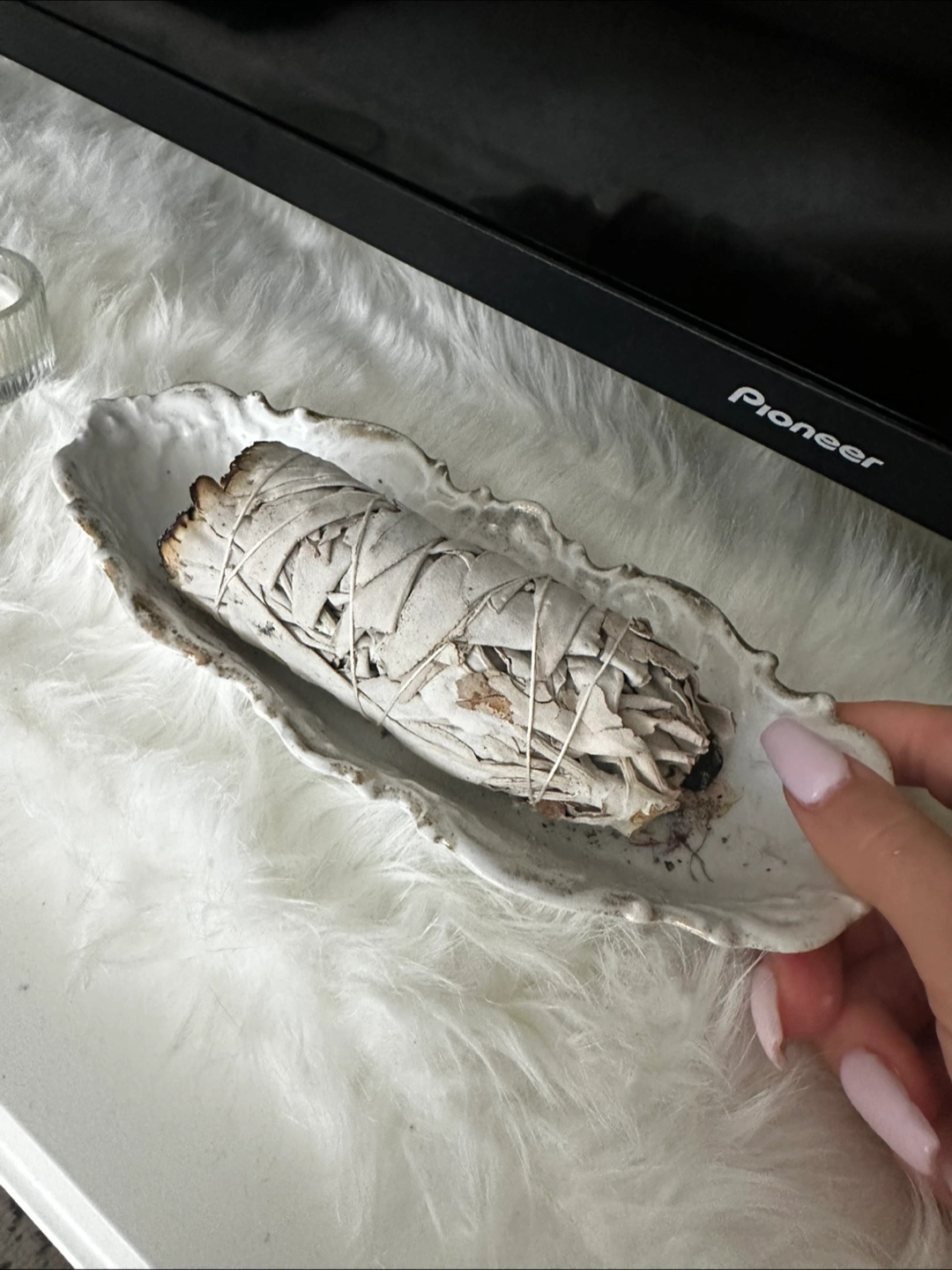 Selling a white sage smudge stick. It's perfect for cleansing your space and creating a calming atmosphere. Barely used. Selling because I don’t want my cats to get into it.