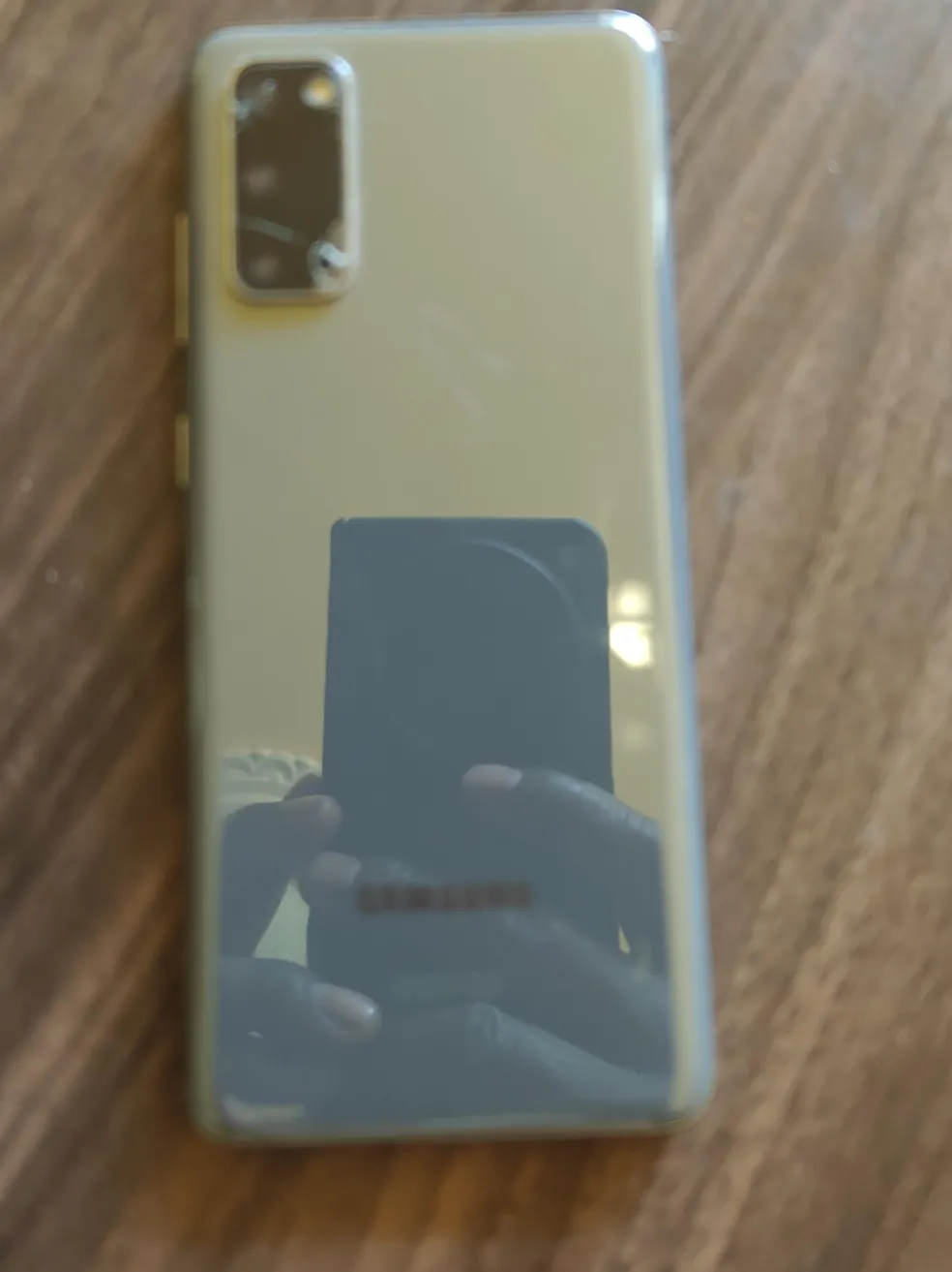 Selling a Samsung Galaxy S20. There's a crack on the camera lens, as shown in the pictures. Otherwise, it's in good working condition!