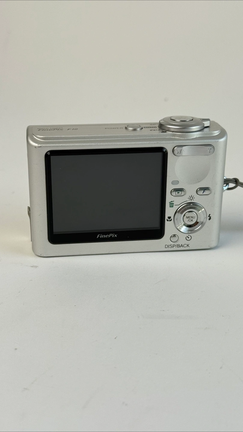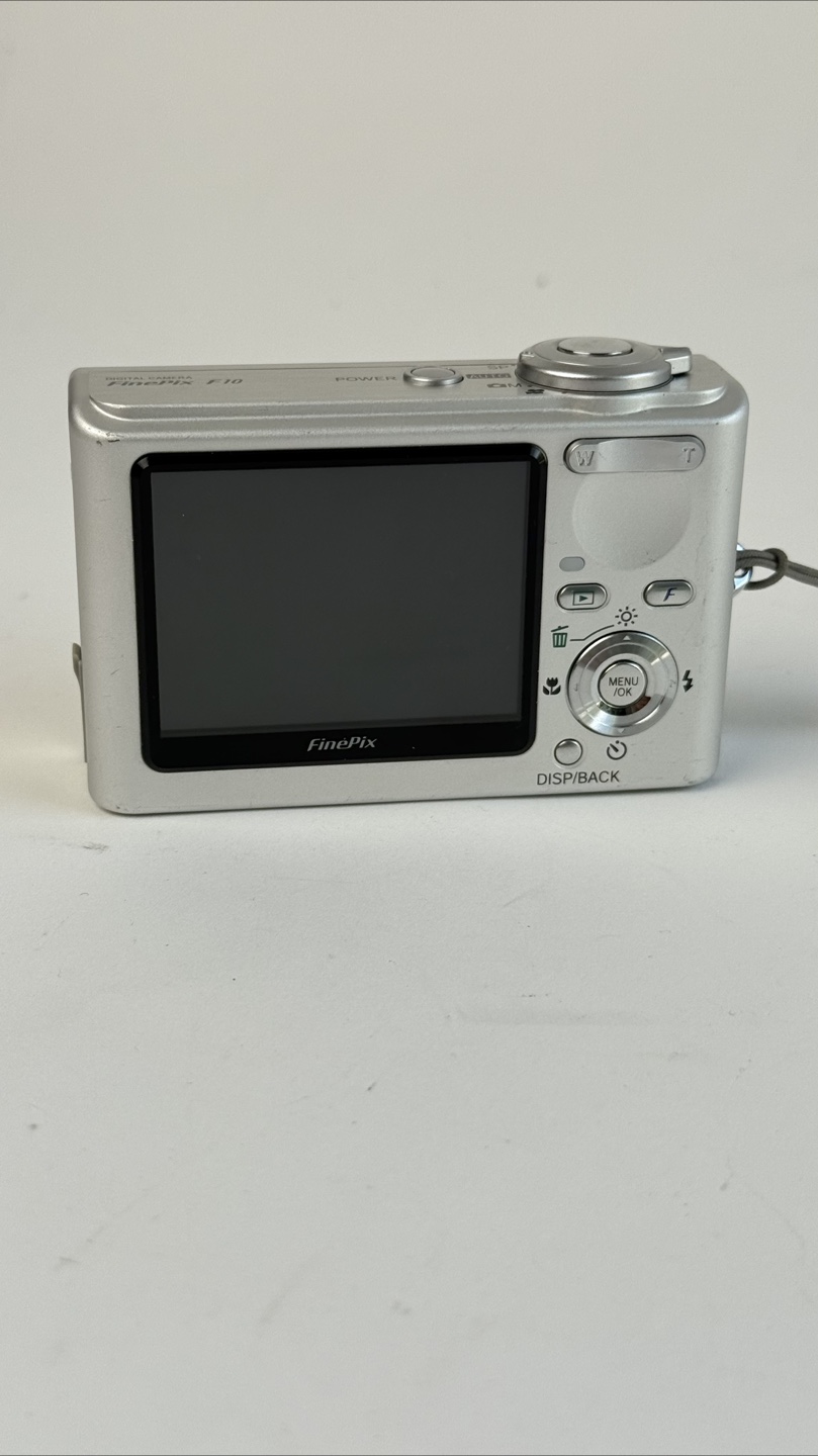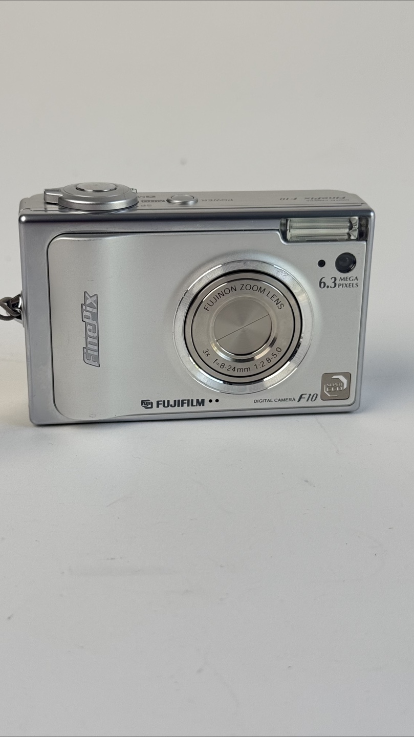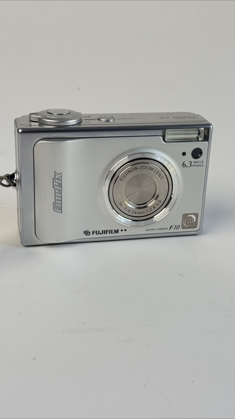 Selling a Fujifilm FinePix F10 digital camera! It's silver and in good condition. It features a Fujinon zoom lens and 6.3 mega pixels. Perfect for capturing memories!