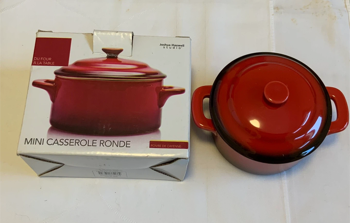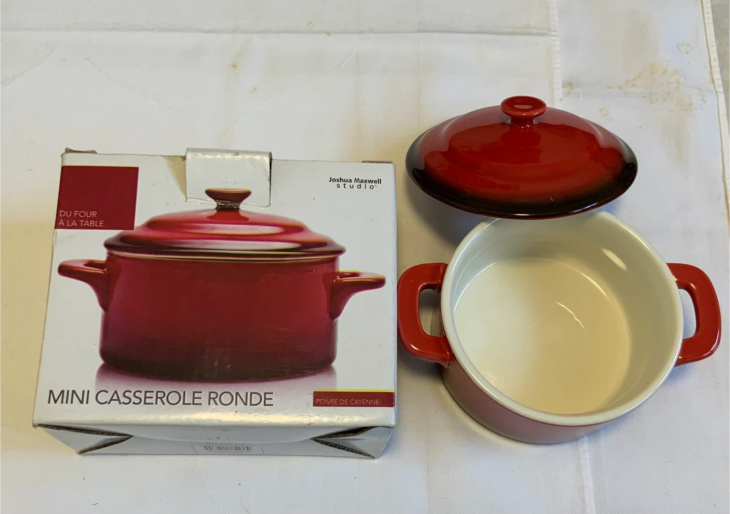 49New Mini Joshua Maxwell Ronde red casserole with lid and handles. 8 ounce Individual baking Ramekin, oven, microwave, and dishwasher, safe, stoneware