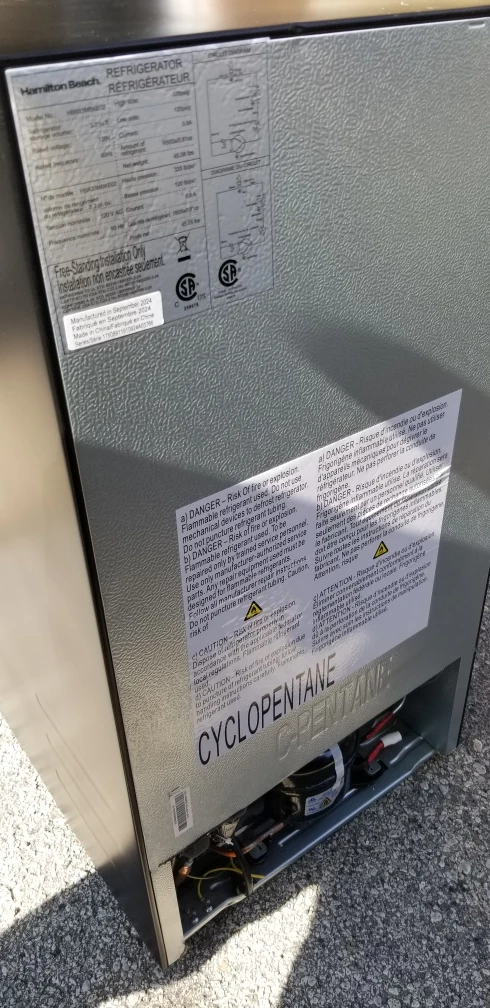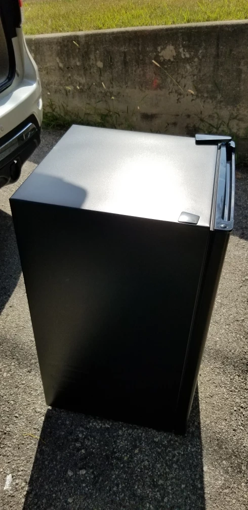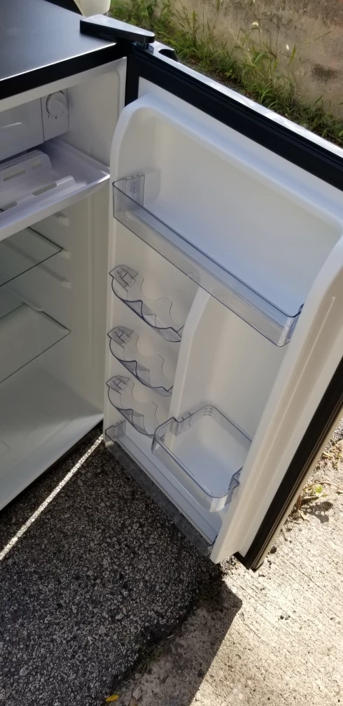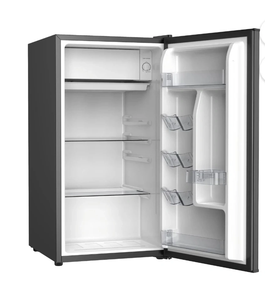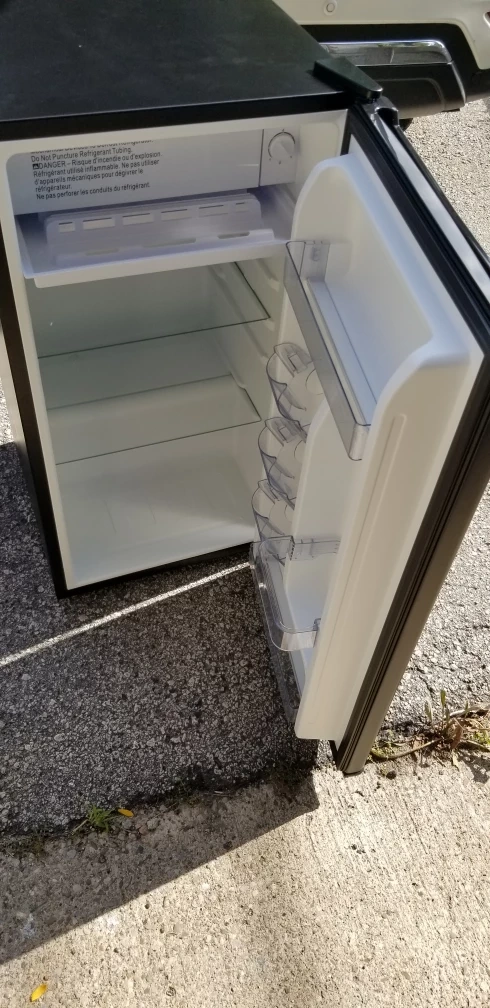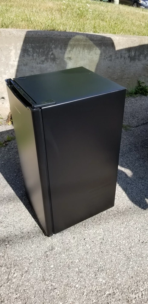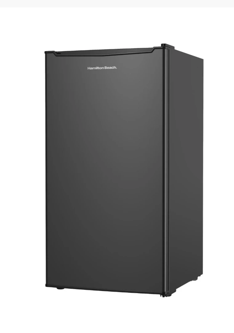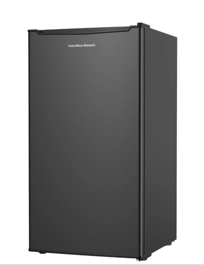 New compact mini fridge by Hamilton Beach! It's new, in great shape and perfect for a dorm room, office, or anywhere you need a little extra cooling space. It's black and has a simple, clean design that fits in anywhere.