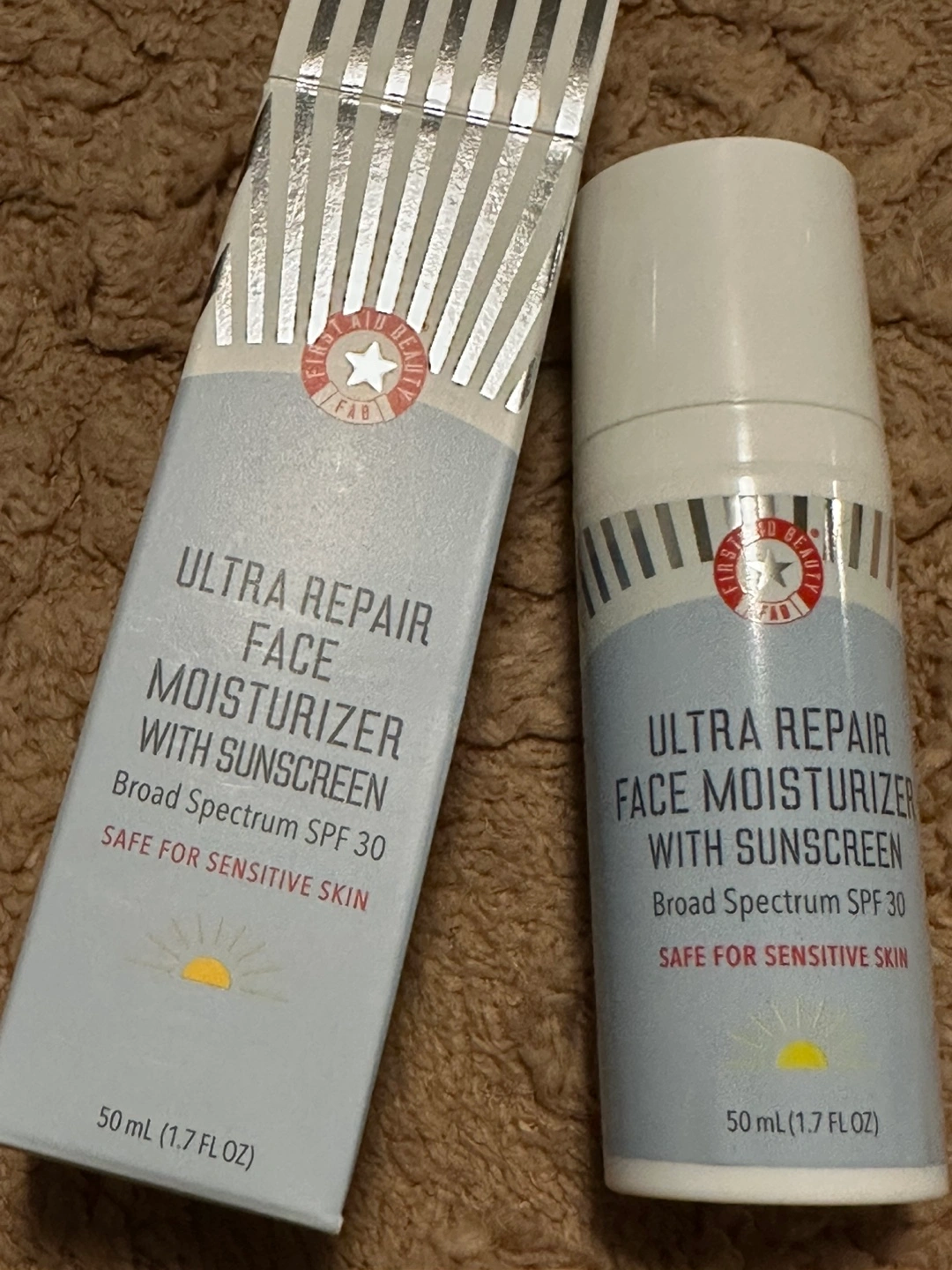 Selling a First Aid Beauty Ultra Repair Face Moisturizer with Sunscreen, Broad Spectrum SPF 30. It's safe for sensitive skin and contains 50 mL (1.7 FL OZ)