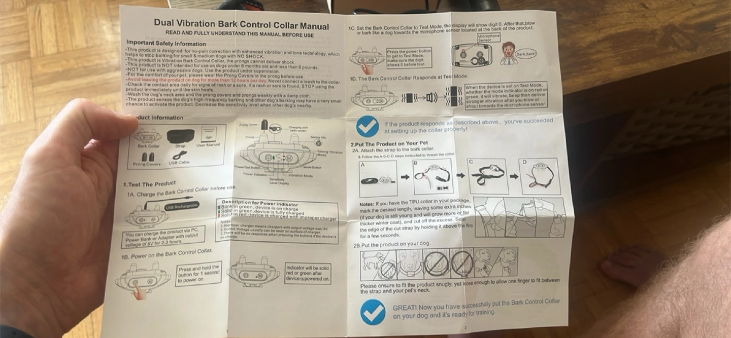 I'm selling a Dog Range bark control collar. It's in excellent condition and comes with the original box. The manual is also included. This collar uses dual vibration to discourage barking. It's a safe and effective way to help train your furry friend!