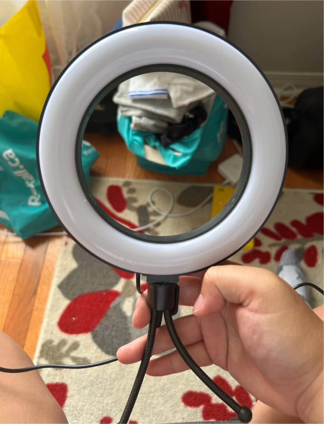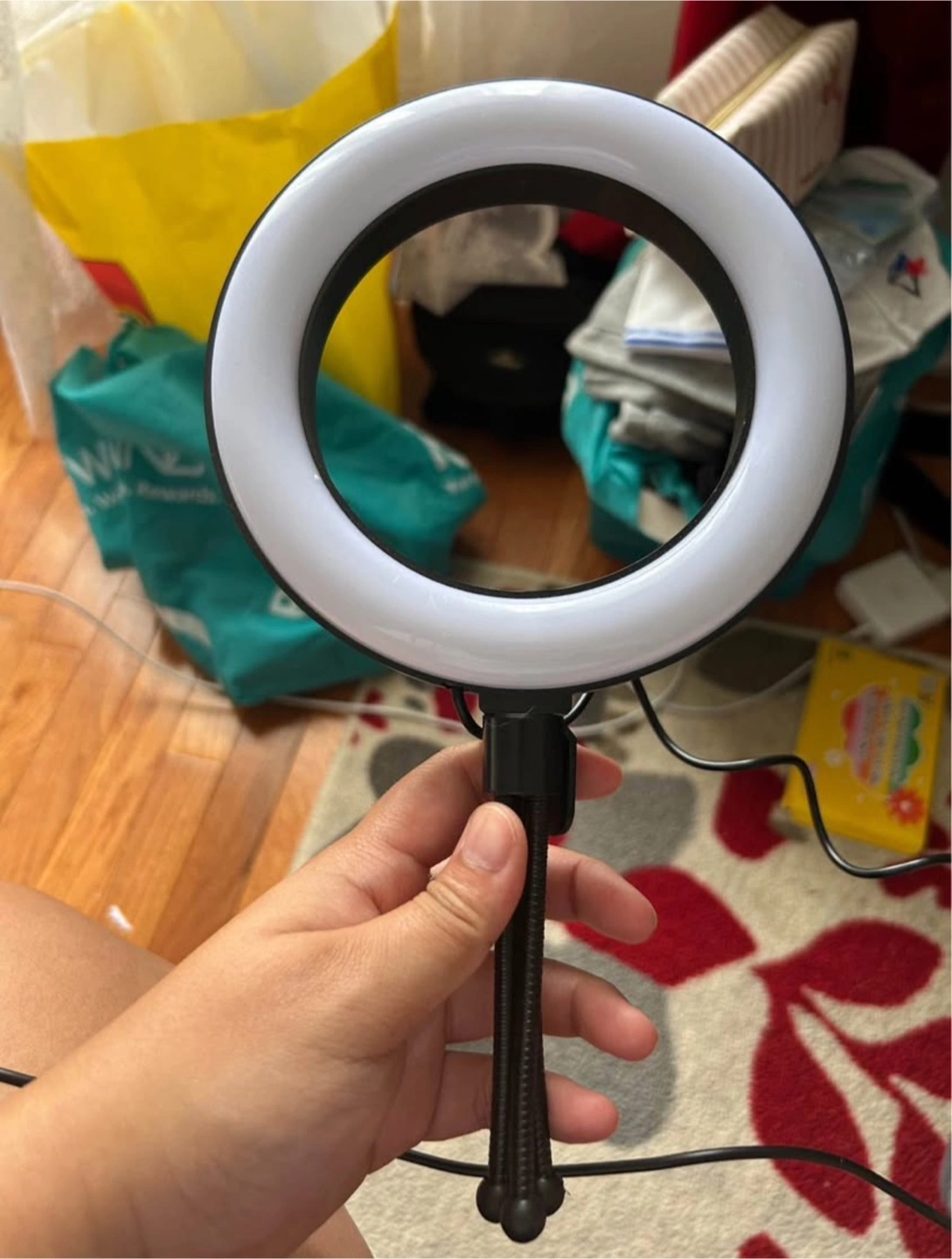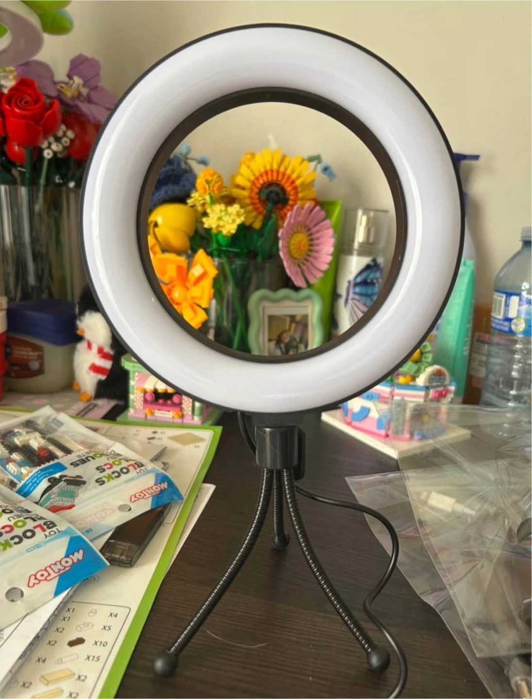 Selling an LED ring light that comes with a tripod stand! It's perfect for getting that extra light for photos or videos. The tripod is adjustable so you can get the perfect angle. The LED ring light has 3 different modes and comes with a controller on the cable to change the modes, to turn off and on, as well as a mode to change the brightness