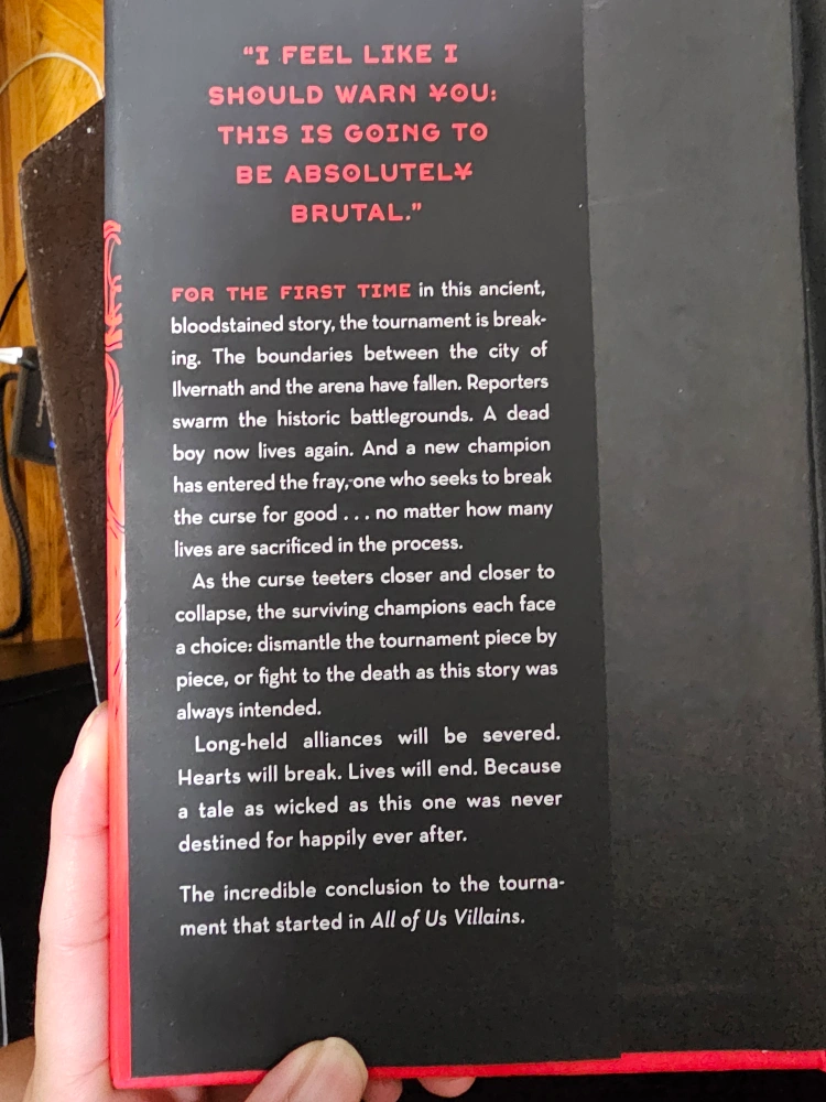 Selling the book All of Our Demise by Amanda Foody and Christine Lynn Herman! It's part of a series, and this is the conclusion to the tournament that started in All of Us Villains. May the best villain win!