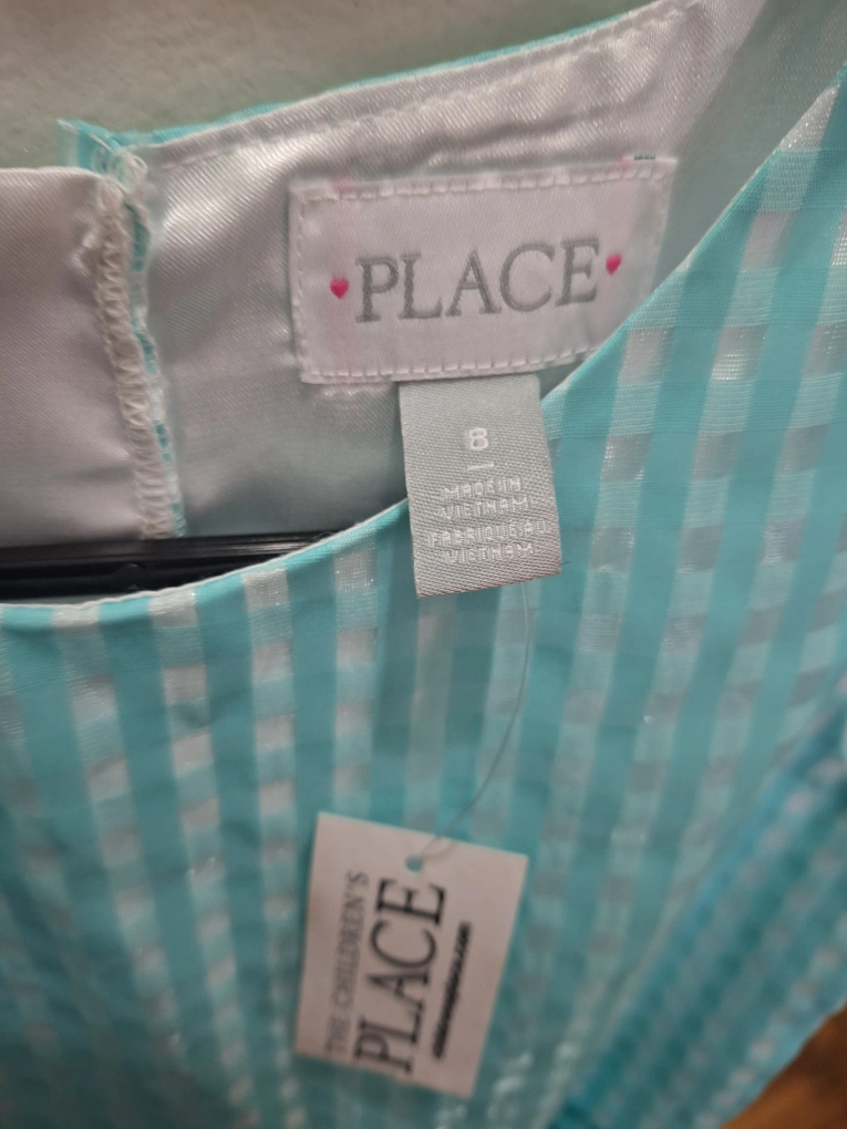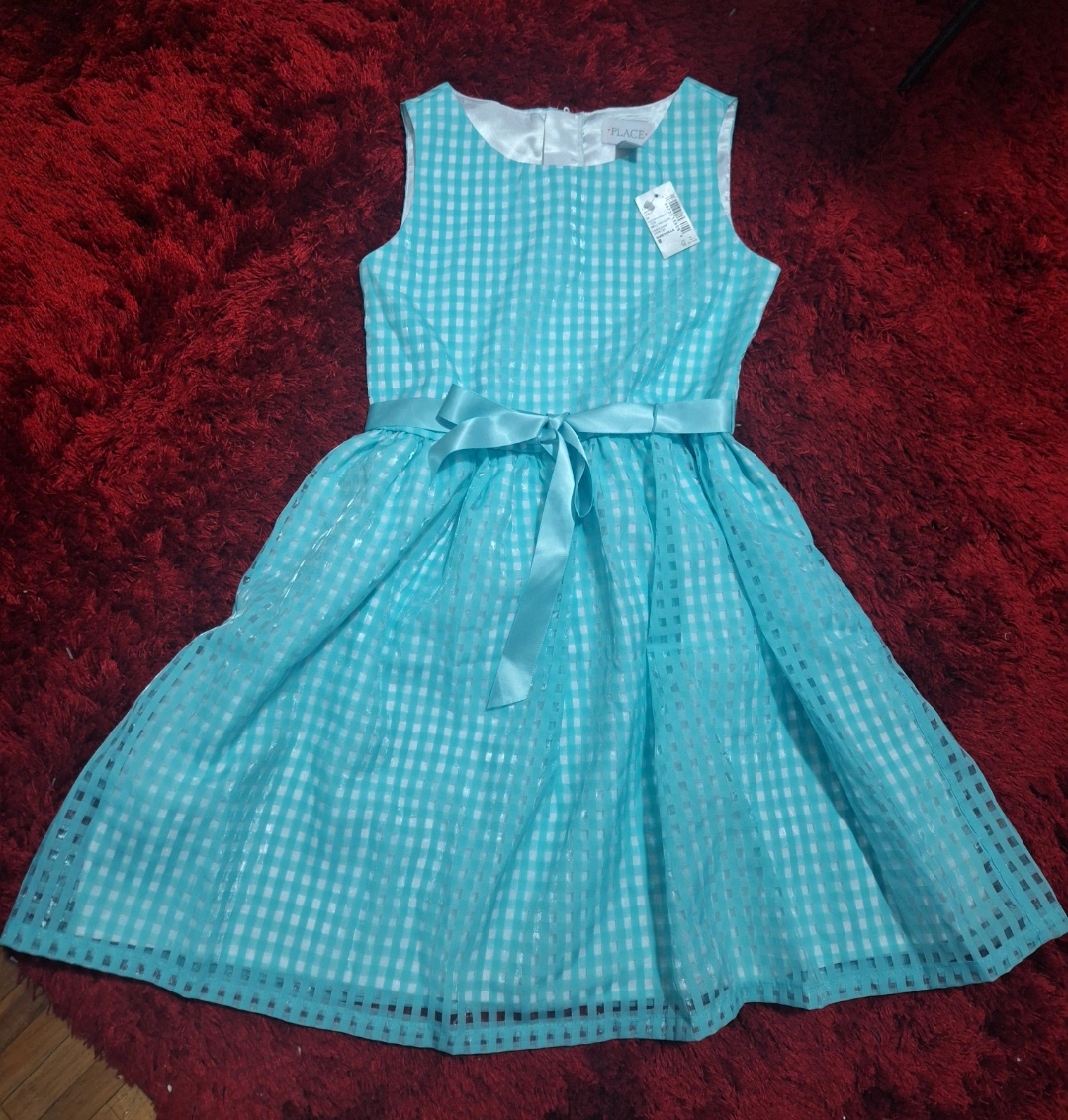 A cute dress from The Children's Place! It's a size 8 and features a lovely blue and white checkered pattern. Perfect for any occasion!