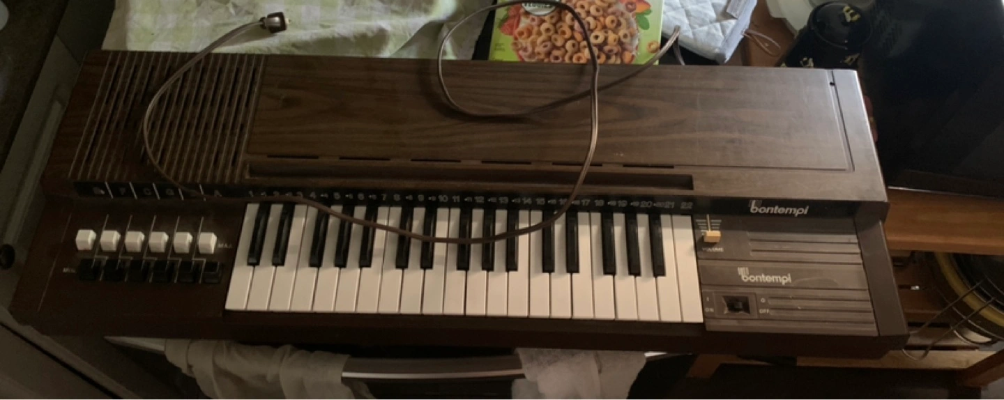 Bontempi Air Organ from the 1960s :) A little dusty with some minor scratches but fully functional, and sounds great. Very light to carry as well.