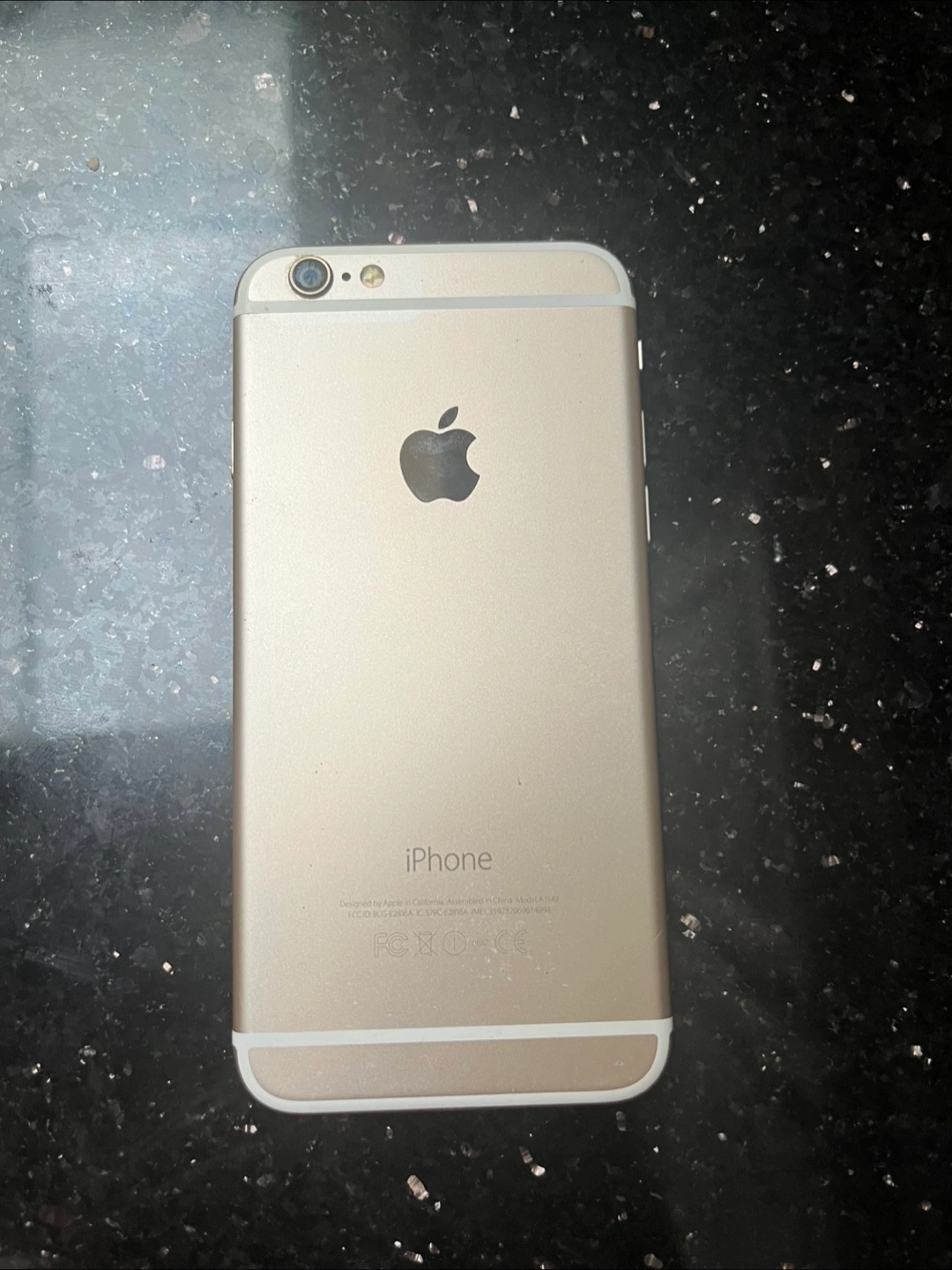 Selling a used iPhone 6 in gold. It comes with a charger cable and screen protector installed. Good condition, barely any scuffs.