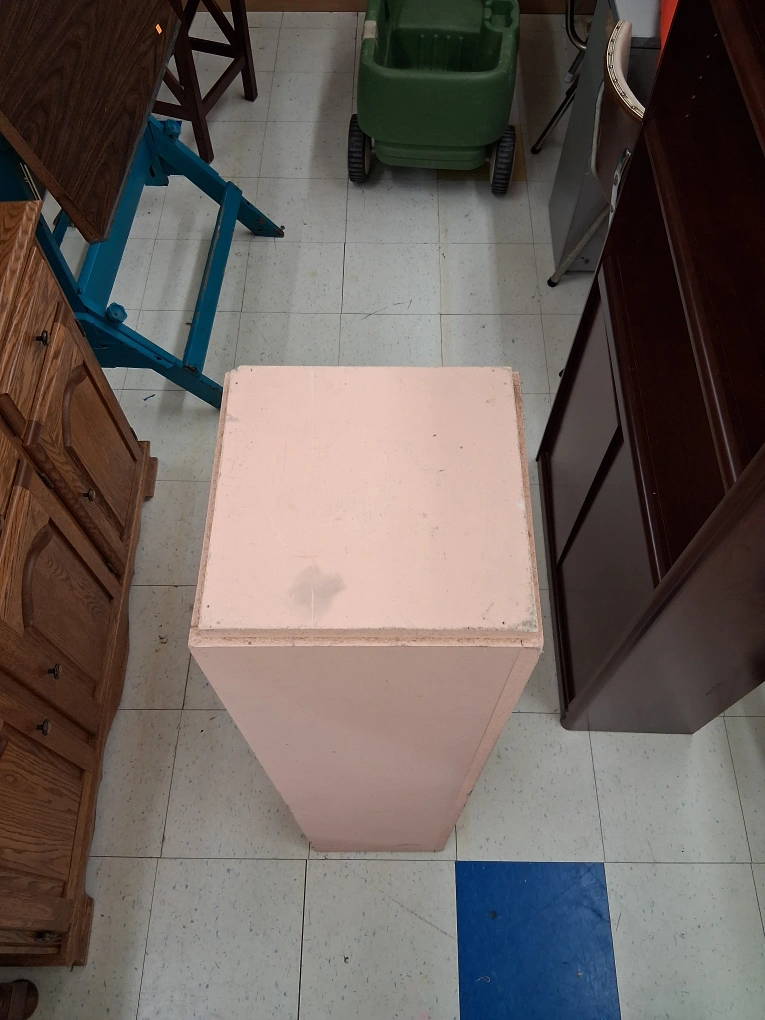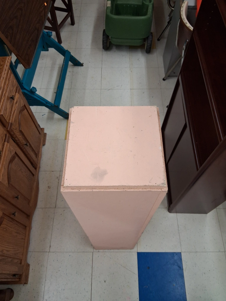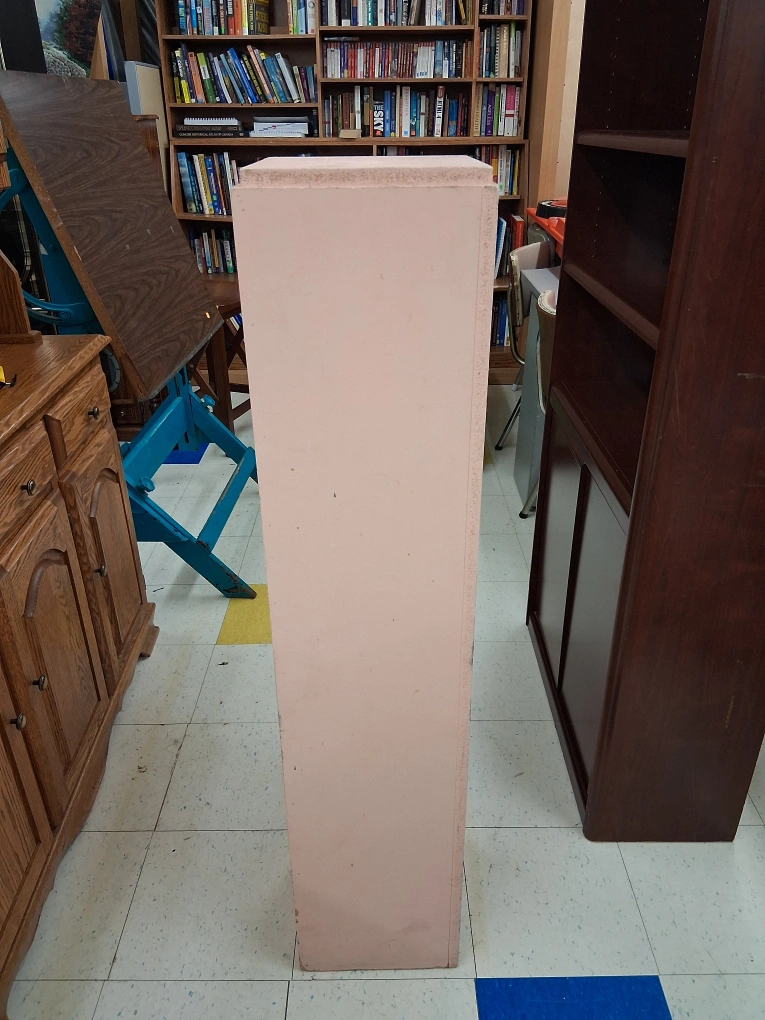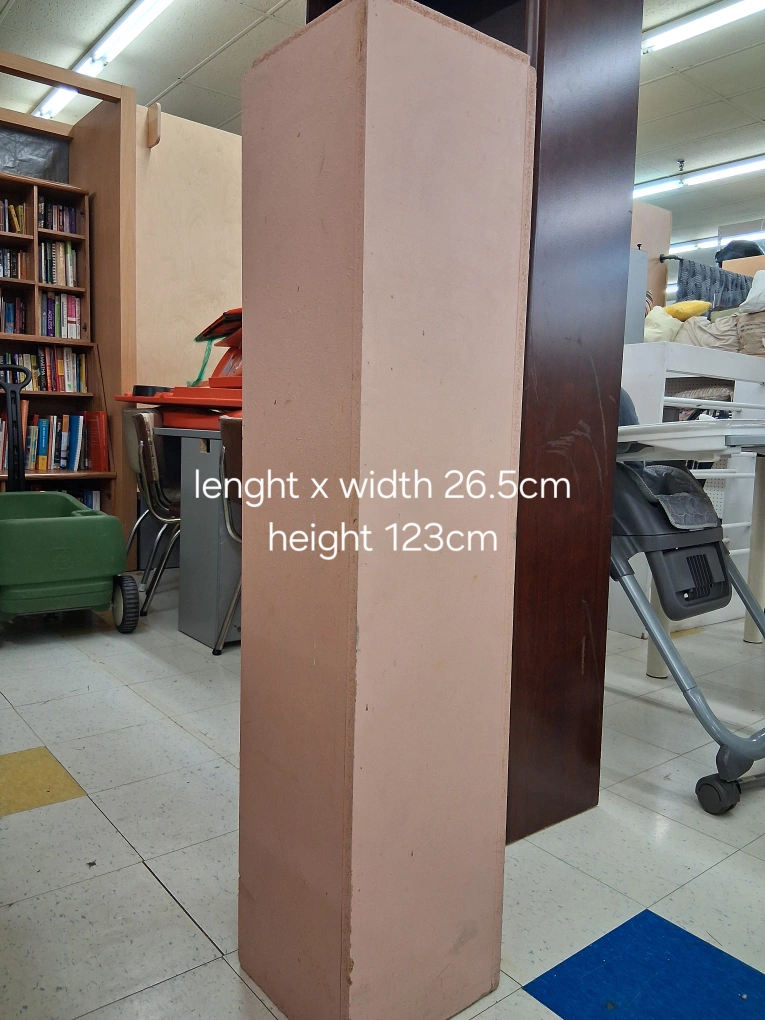 Selling a pink wooden display pedestal, perfect for showcasing items or adding a unique touch to your space. The dimensions are: length & width 26.5cm, height 123cm