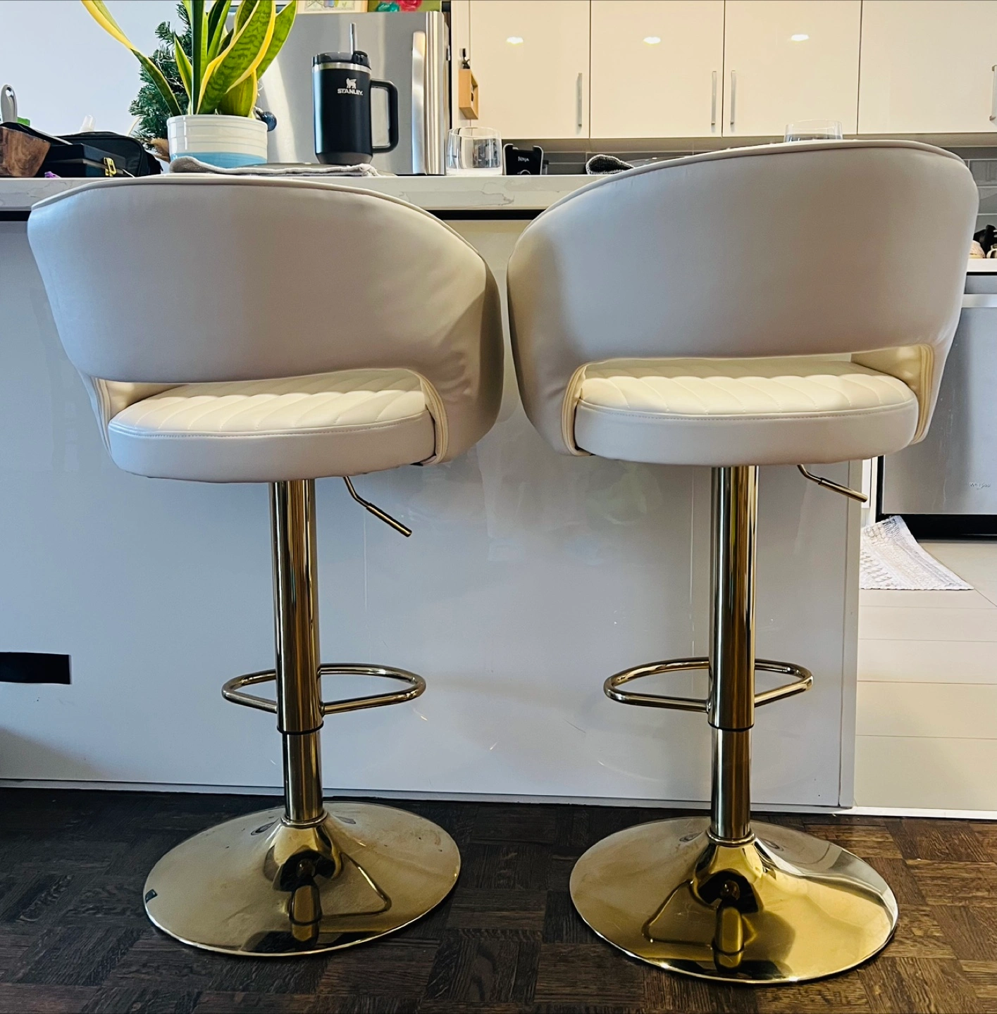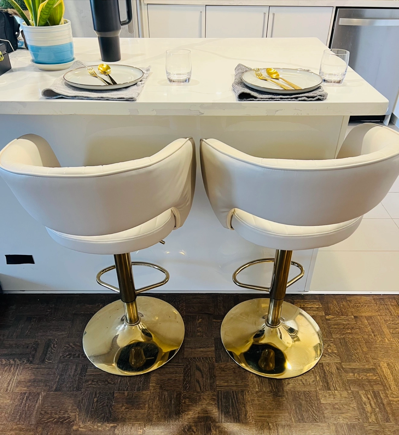 Bar Stools/Chairs - Leather seats & gold base (Set of 2)