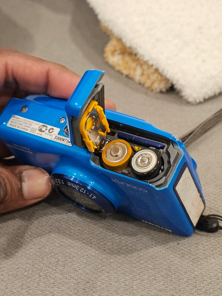 Selling a blue Nikon Coolpix digital camera! It's waterproof and in good condition. Perfect for taking photos on the go or capturing memories on your next adventure.