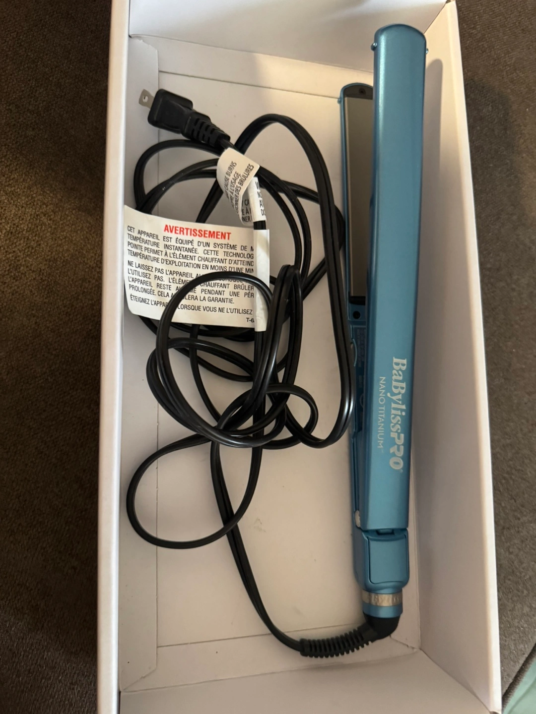 Selling a like-new BabylissPRO Nano Titanium straightening iron! It is in excellent condition. This model is known for its quick heating and consistent temperature, leaving your hair smooth and shiny. Perfect for all hair types!