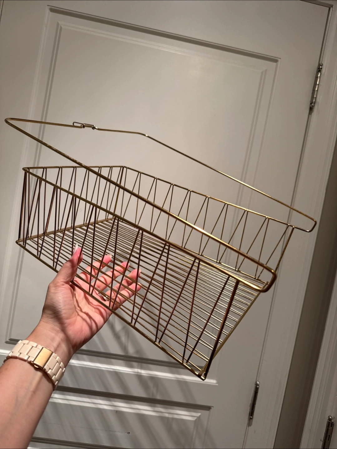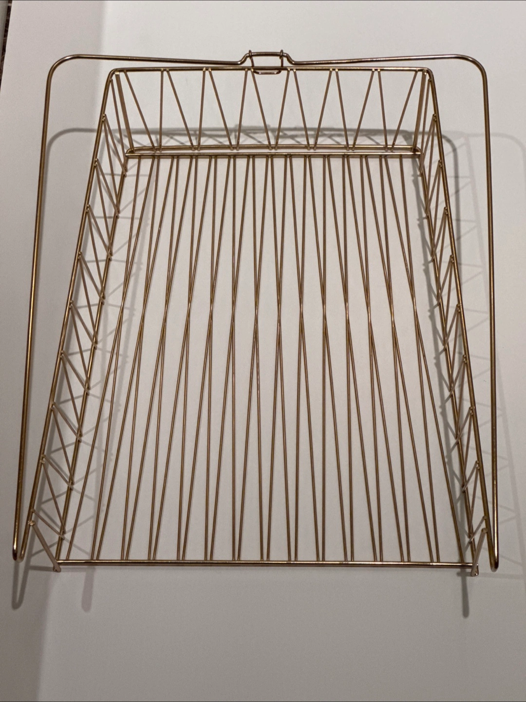 Here's a handy brass gold-toned, under-cabinet basket rack from IKEA! It's perfect for adding a bit of extra storage to your office shelf, kitchen or pantry. It's in great shape and ready to help you organize your space.