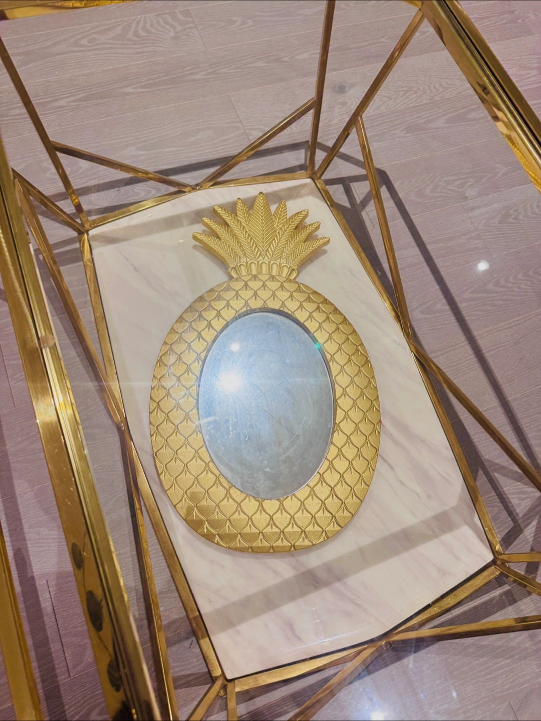 Add a touch of tropical charm to your space with this beautiful gold pineapple accent mirror! It's perfect for adding a bit of fun to any room. The mirror is in good condition and ready to brighten up your home!