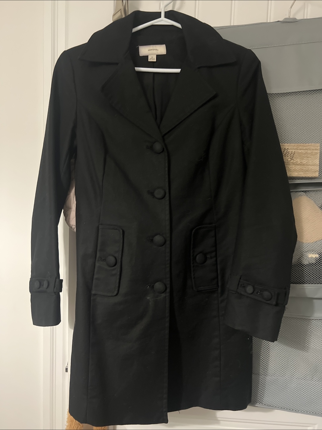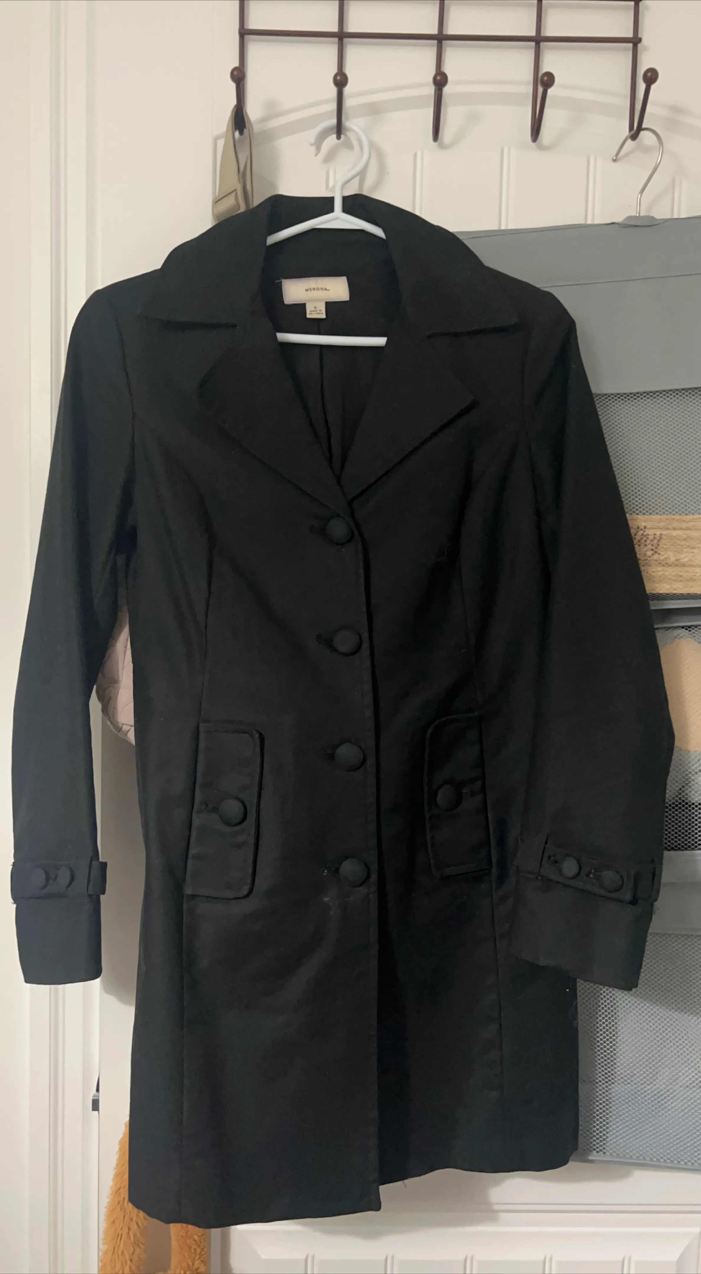 A stylish black coat from Merona in size 4. It's in great condition, perfect for adding a touch of class to any outfit!