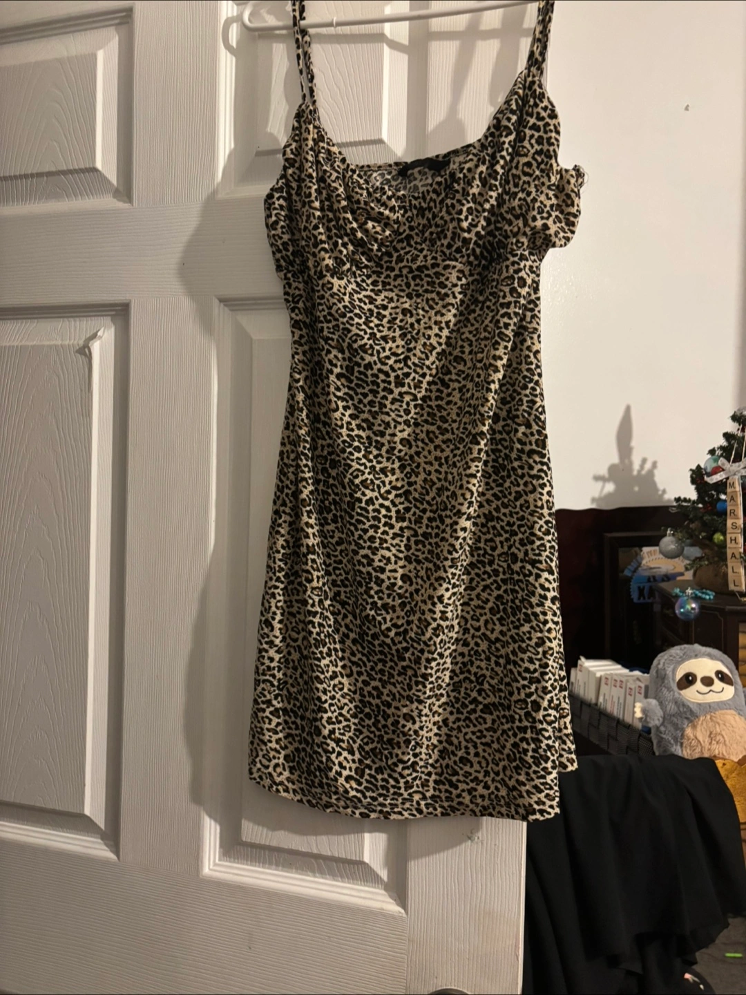 Cute leopard print mini dress. It's in great condition and ready for a new home! Perfect for a night out or a casual day. The dress features a flattering silhouette and is made from a comfortable material.