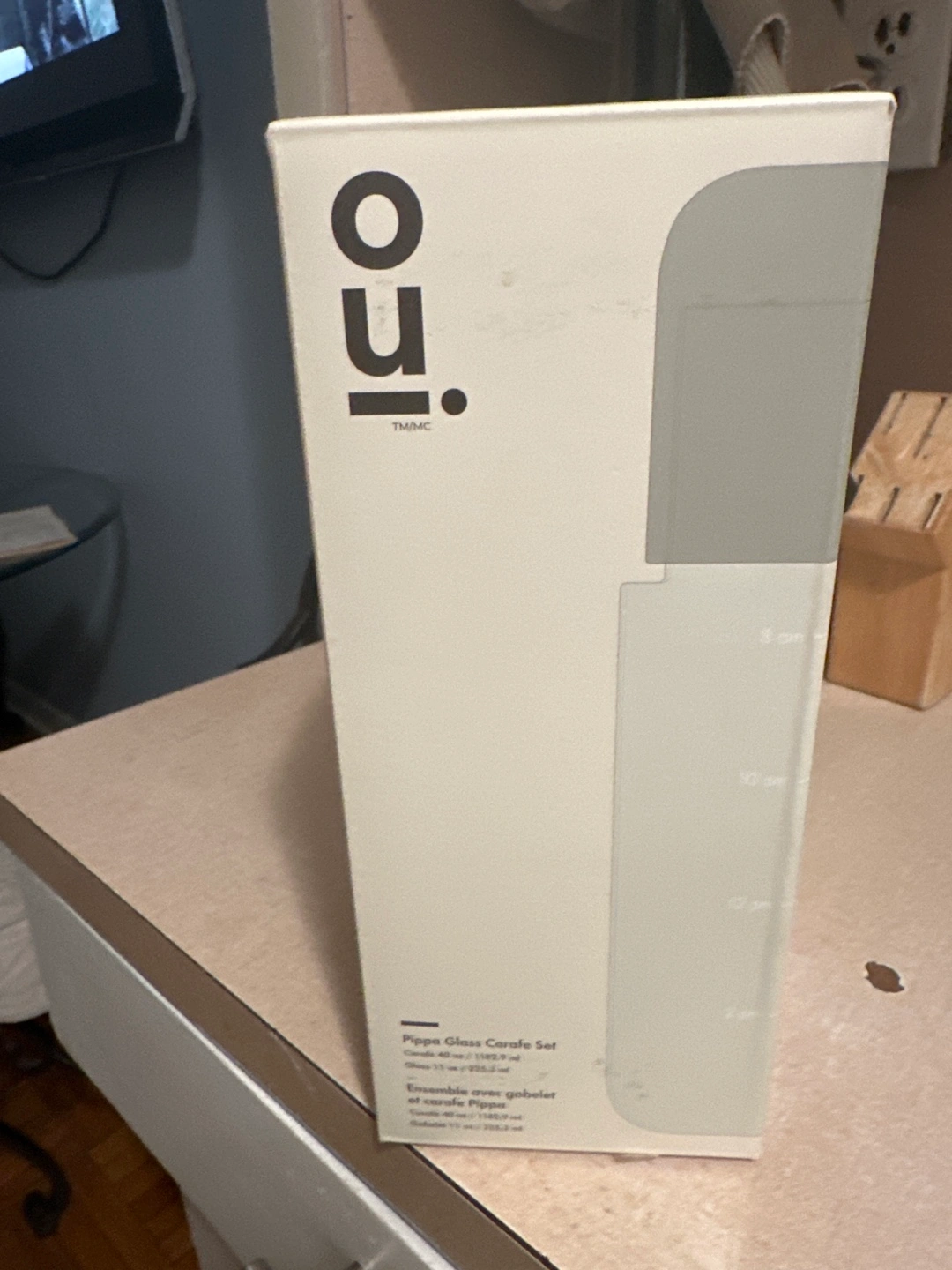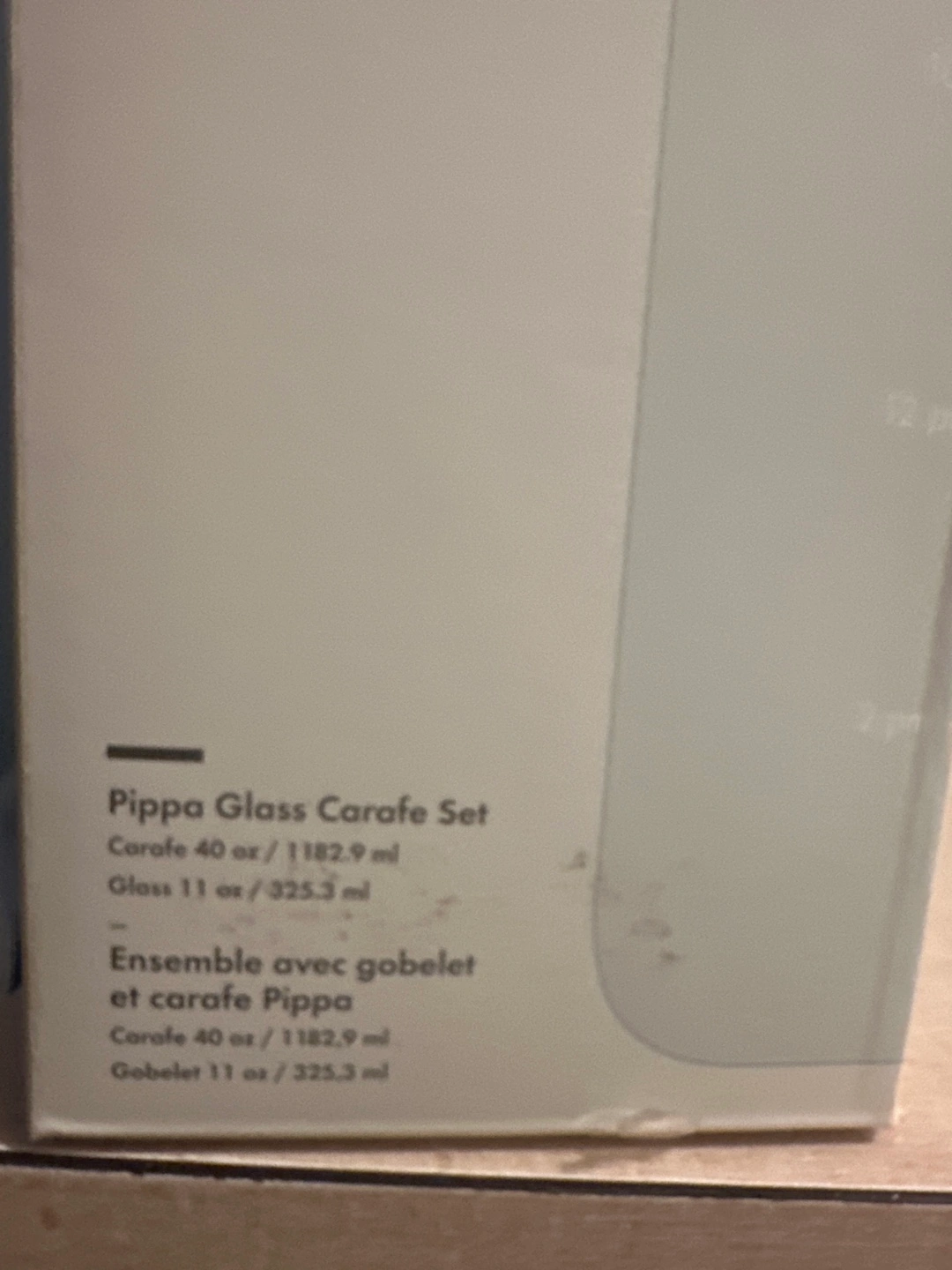 Selling a brand new OUI Pippa Glass Carafe Set! It includes a 40 oz carafe and an 11 oz glass. The box is included, so it would make a lovely gift for someone