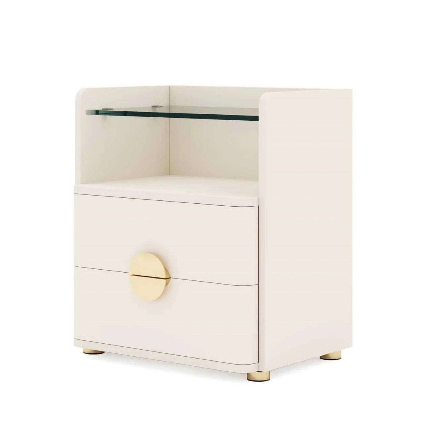 Cream Nightstand with Glass Shelf