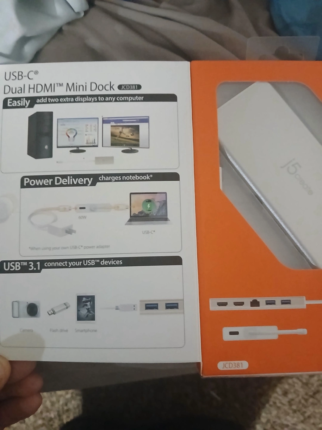 Selling a j5create USB-C Dual HDMI Mini Dock, model JCD381! It allows you to easily add two extra displays to your computer. It also features power delivery to charge your notebook using your own USB-C power adapter, and it connects your USB devices using USB 3.1