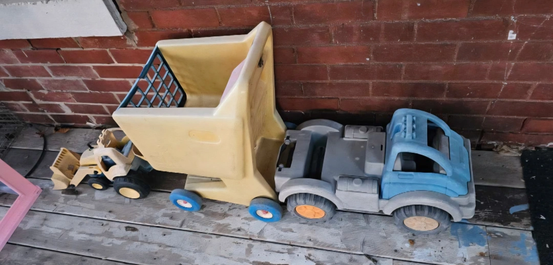 Selling a classic Tonka truck and loader set! These toys are super durable and great for kids who love construction vehicles. They have some signs of wear, but they're ready for lots more playtime