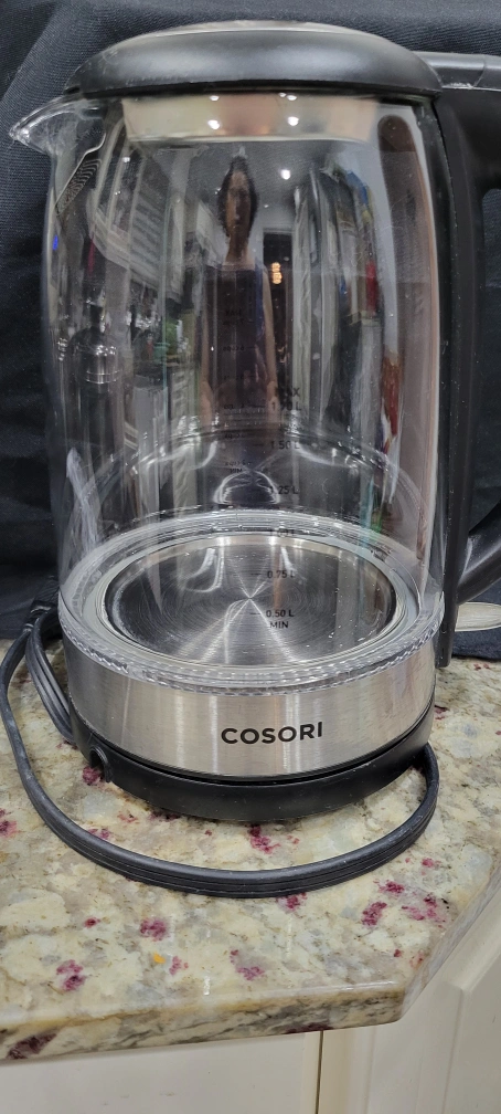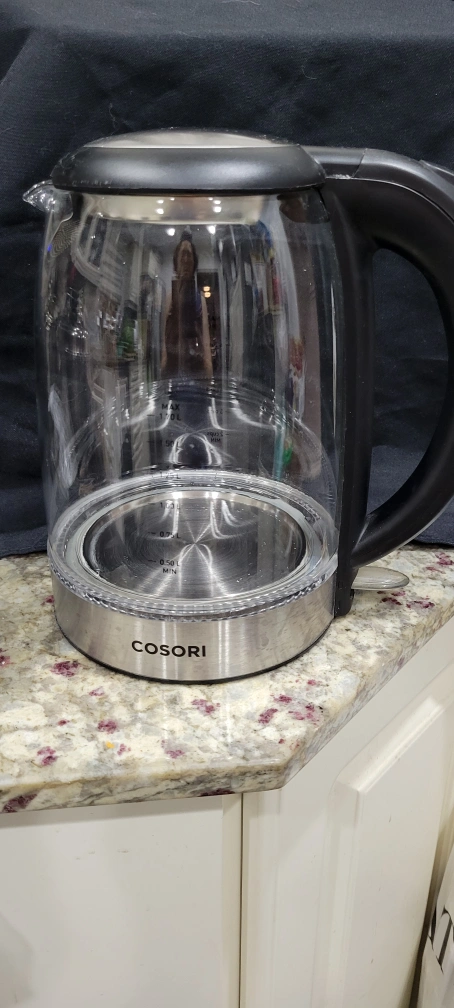 Selling a Cosori glass electric kettle. It's in great condition and ready to heat up your water quickly and efficiently! The clear glass design lets you see the water boiling, and it looks great in any kitchen