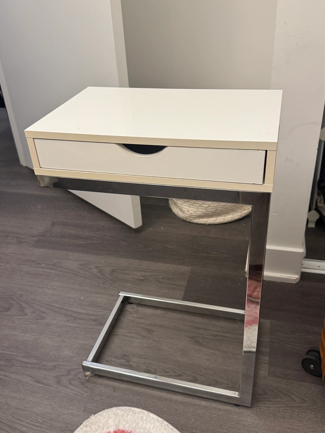 Selling a white accent table from Monarch Specialties! It's in great condition and ready to add a touch of modern style to your space. The table features a sleek design with a drawer for storage and a sturdy frame.