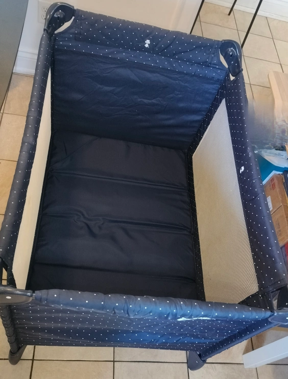 Selling a Graco Pack 'n Play Bassinet. It's in good condition and perfect for your little one. The bassinet features a cute blue colour with white dots. It's a great, portable option for newborns and infants!. it has a net that you can put on top.