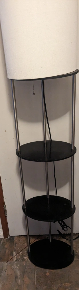 Here's a floor lamp with built-in shelves! It's in great shape and ready to brighten up your space with both light and storage
