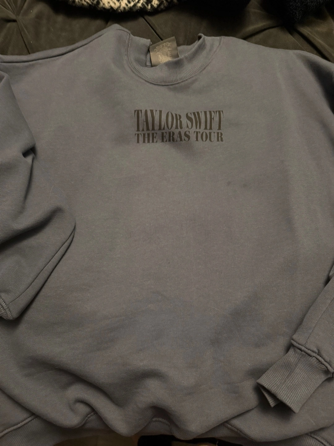 Selling a Taylor Swift The Eras Tour 2023-2024 crewneck sweater! It's a cozy, great way to remember the tour, listing all the cities. Perfect for any Swiftie purchased night 2 in vancouver