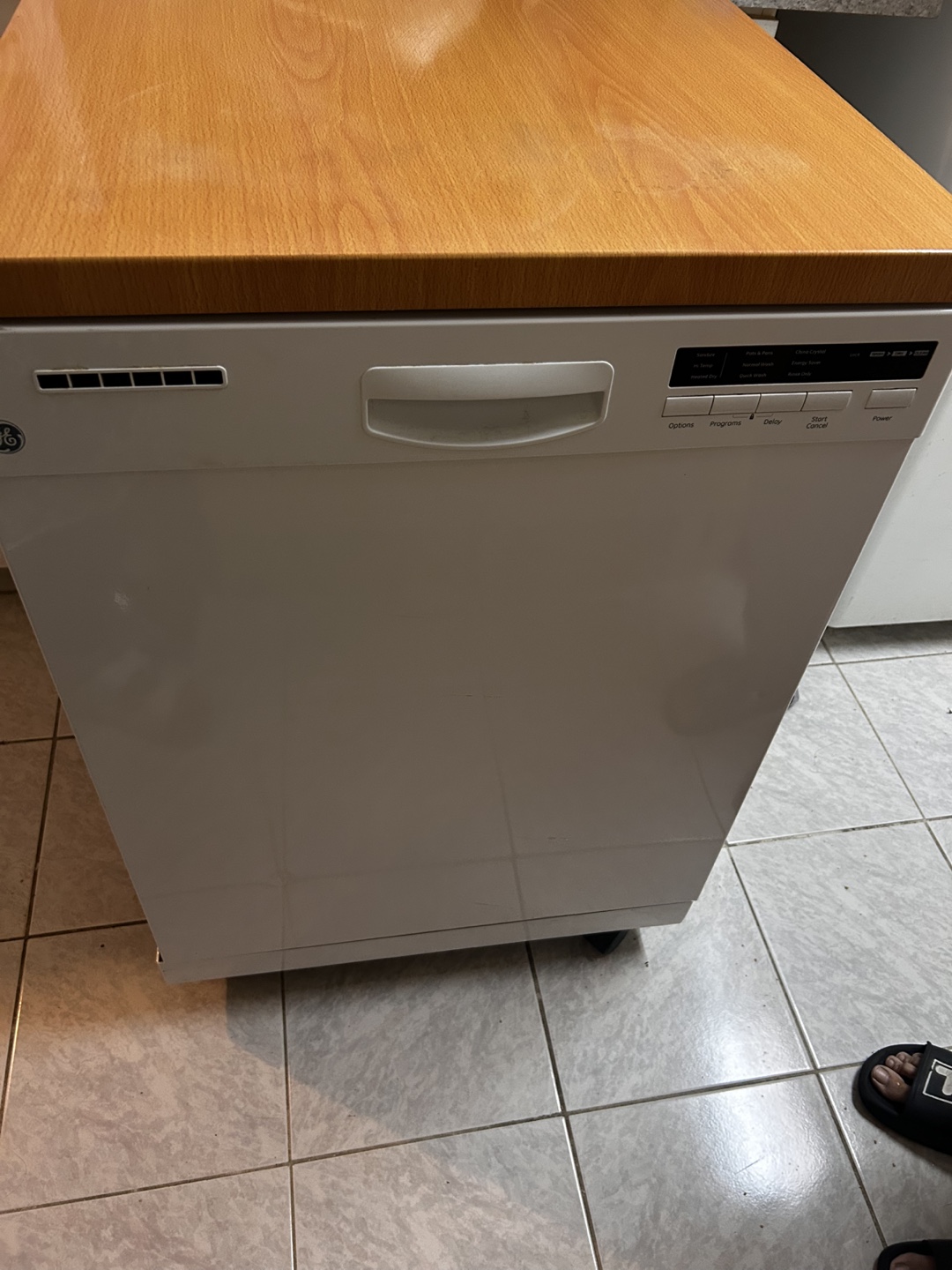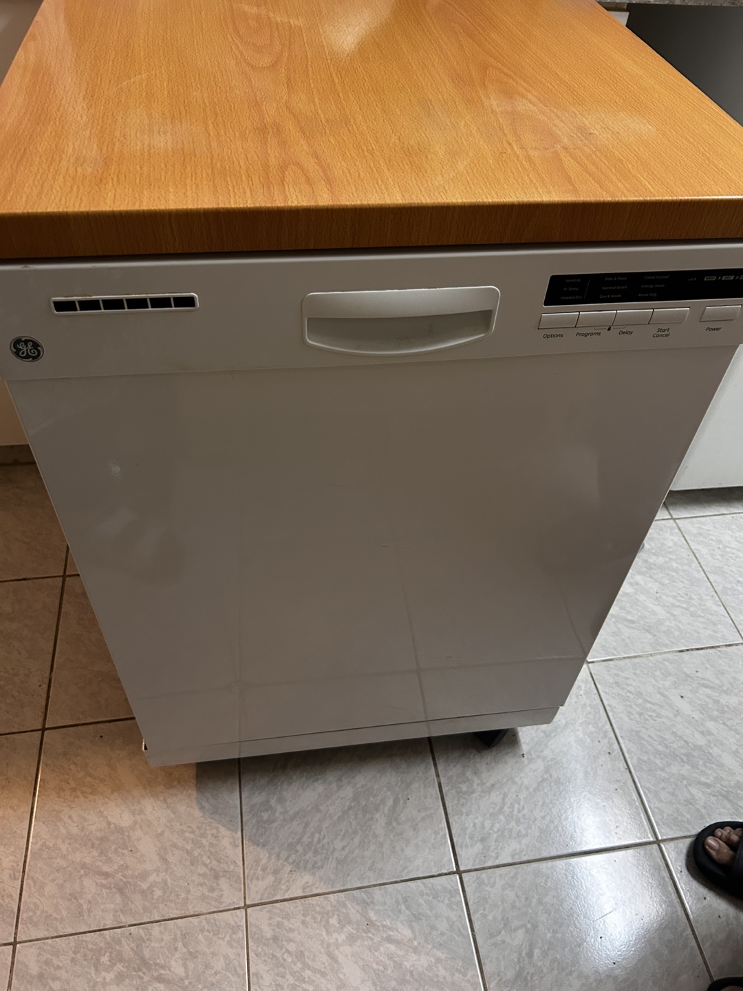 Selling a GE portable dishwasher. It's white with a wood top and is in good working condition. Great for apartments or small spaces where a built-in dishwasher isn't an option