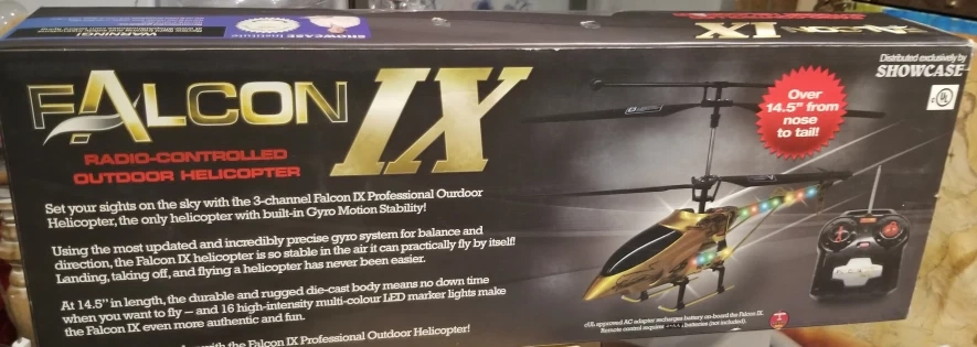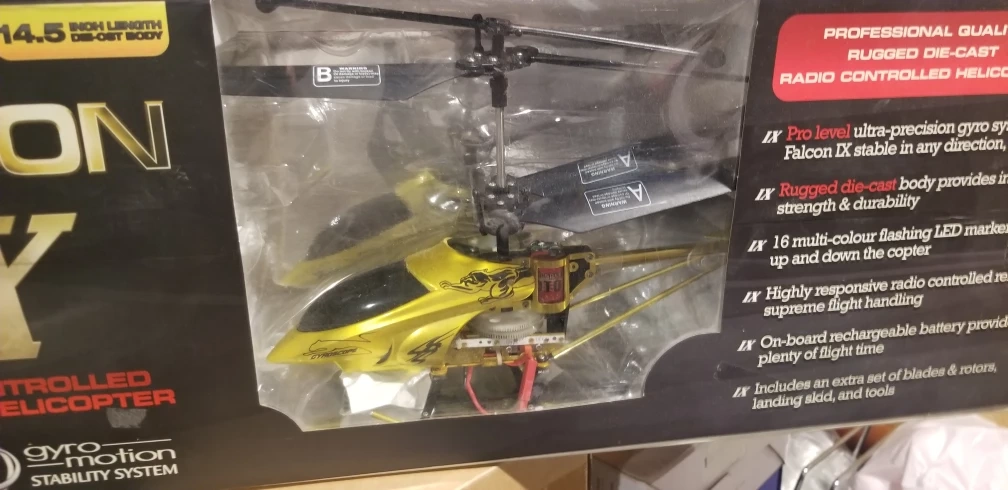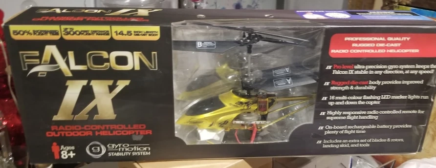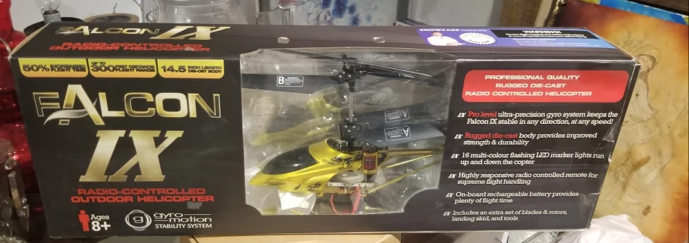 Selling a brand new Falcon IX radio-controlled outdoor helicopter. It's still in its original packaging!